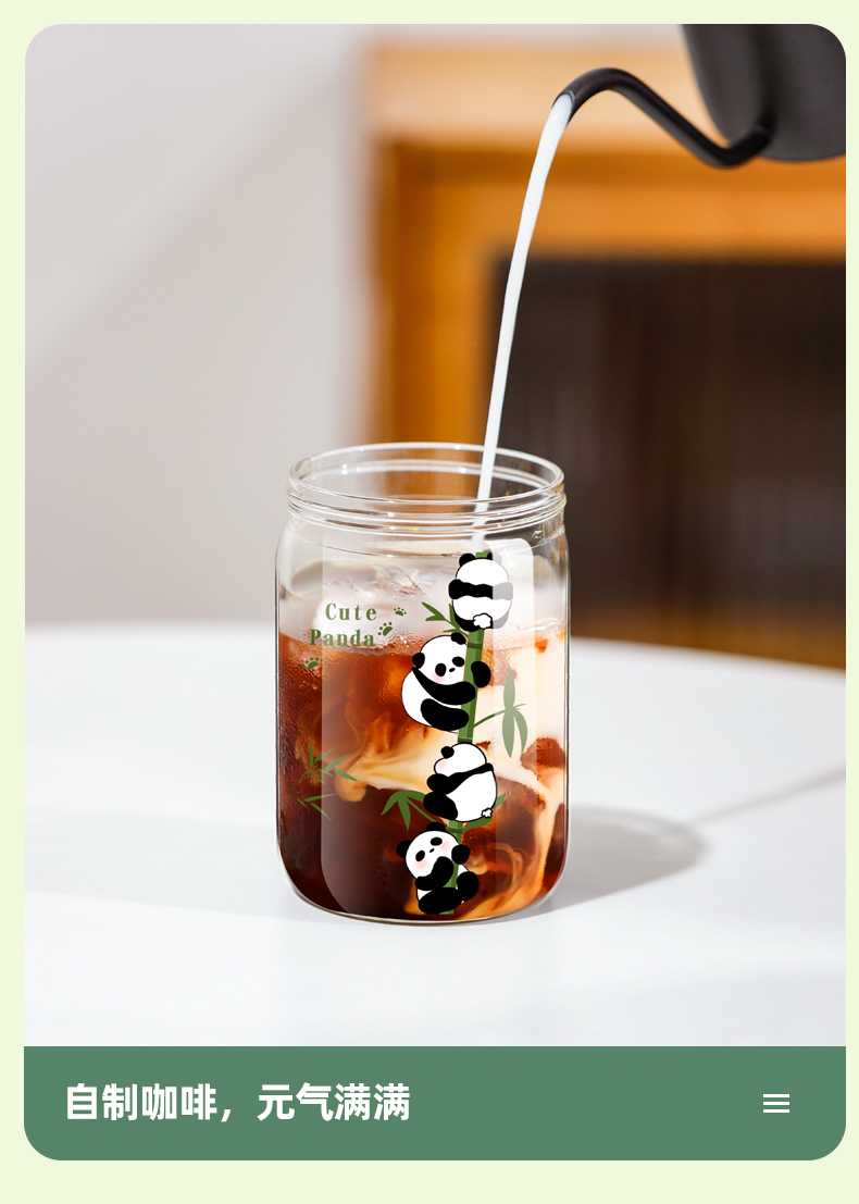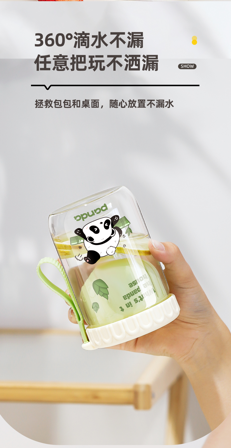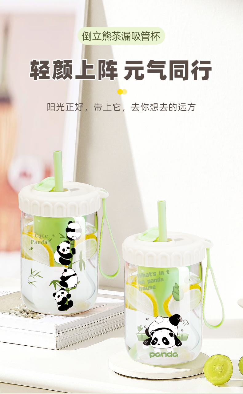 學生便攜熊貓茶漏杯玻璃杯帶蓋隨手杯大容量水杯吸管杯高硼硅杯子