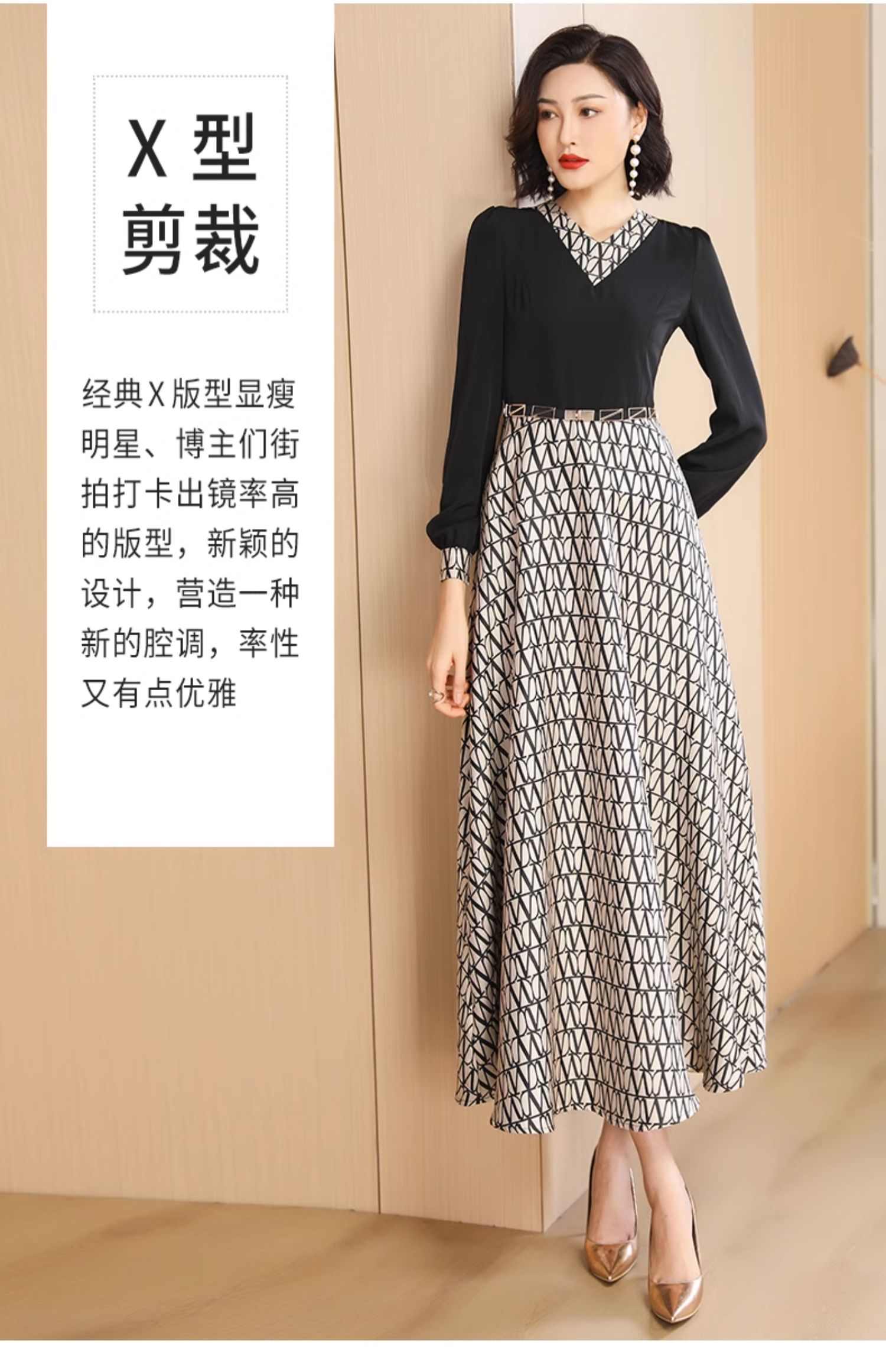 黑色拼接假兩件連衣裙女高級感顯瘦2023年秋季新款氣質減齡長裙子