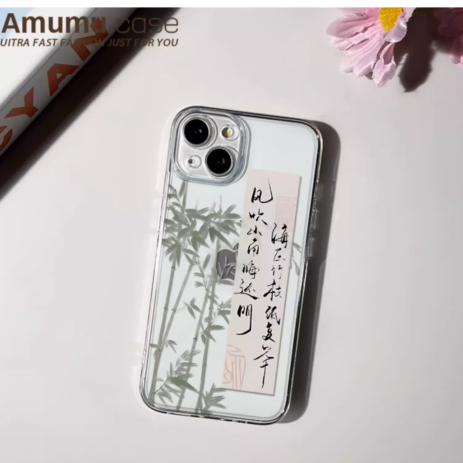 適用于高級古風竹子蘋果15iPhone5s華為榮耀play7tprovivox27prooppor11小米紅米K50ultra透明手機殼一加ace2