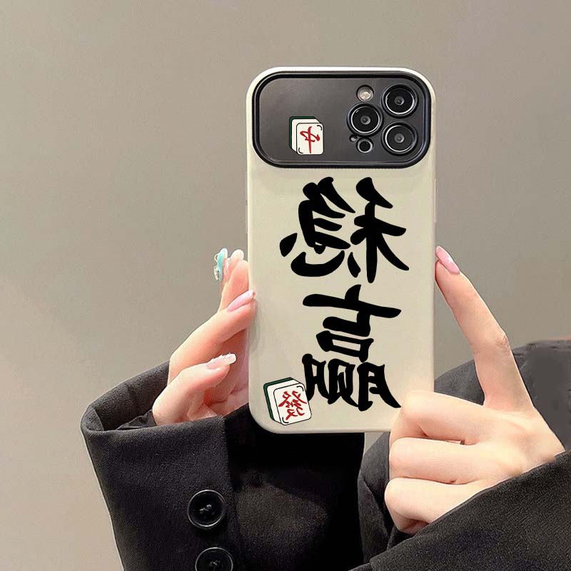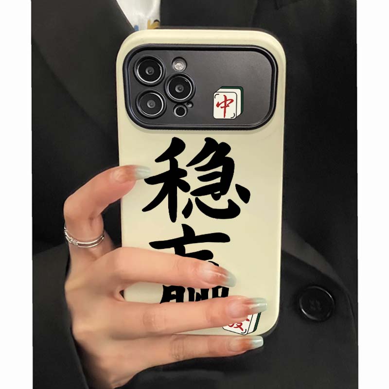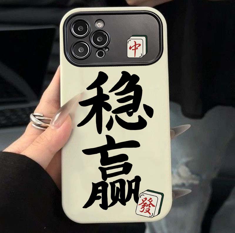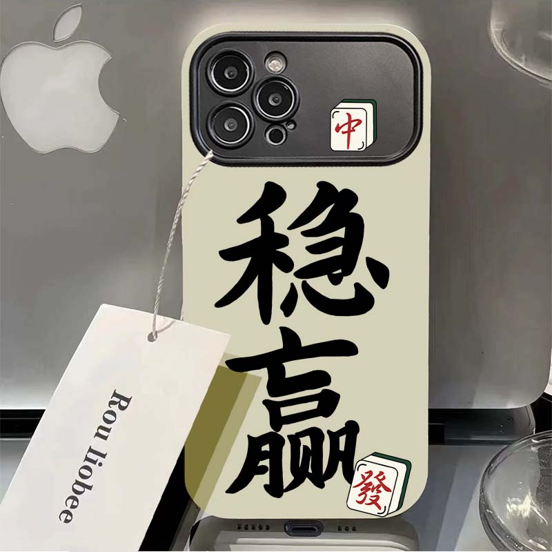 趣味文字麻將穩贏新款蘋果14promax大視窗磨砂軟殼適用iphone13手機殼男女12防摔11全包xrxs硅膠保護套14plus