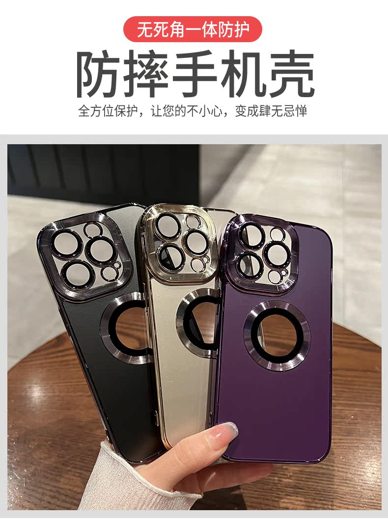 umj【創意新款】iphone15pro手機殼折疊式鏡頭支架15plus適用蘋果14proMax簡約13電鍍12軟膠11防摔保護套男女