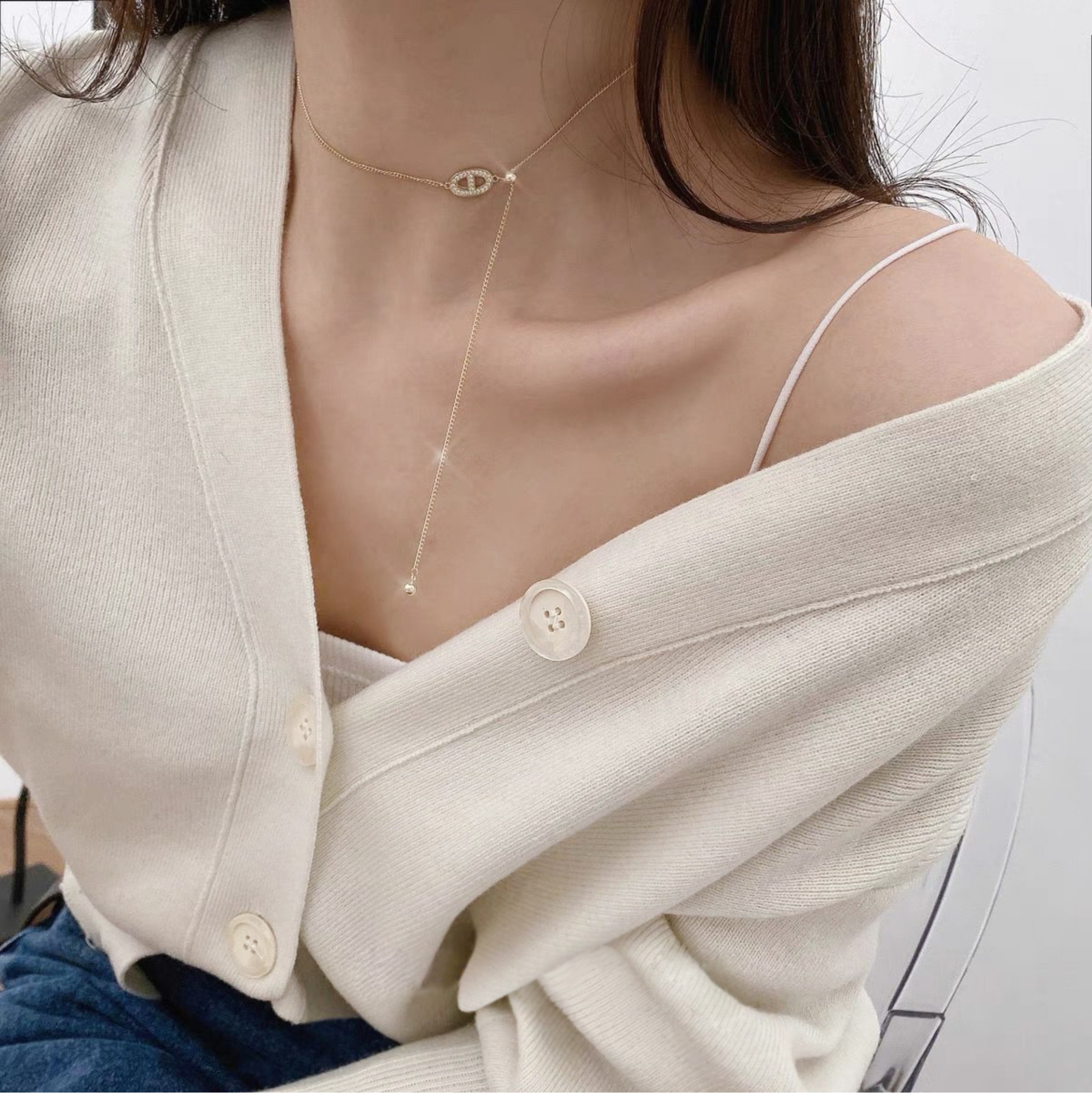 韓國超仙氣質鼻子抽拉項鏈女小眾設計感簡約百搭高級感輕奢鎖骨鏈