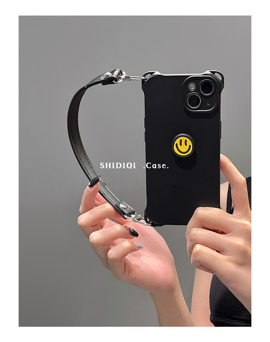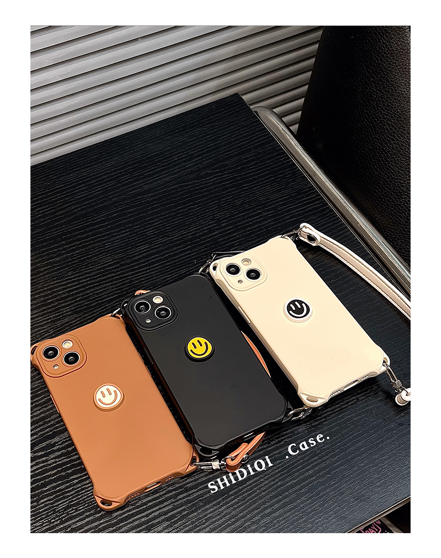 詩迪奇 ins小眾純色笑臉帶掛繩適用蘋果15pro手機殼iPhone14promax新款13pro創意11女12軟14防摔15全包手機套