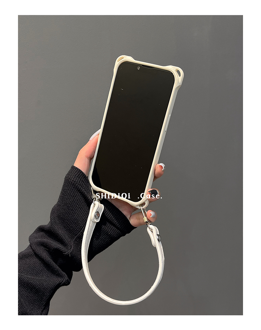 簡約磨砂純色氣囊殼帶掛繩手腕適用蘋果15ProMax手機殼iphone13新款12防摔11女14pro/13pro全包軟硅膠保護套