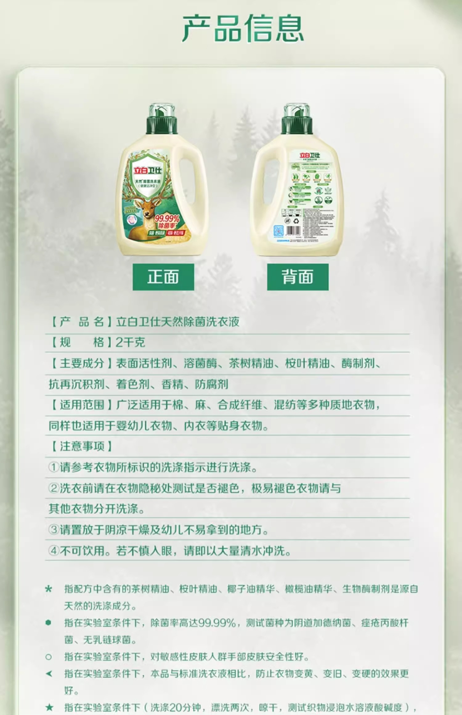 立白衛仕天然除菌洗衣液抑菌除真菌防霉留香祛味深層潔凈洗衣液