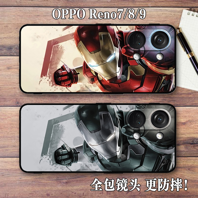 適用OPPO Reno9/9pro宇航員卡通創意硅膠手機殼7/8pro+全包防摔鋼鐵俠保護套貓頭鷹男