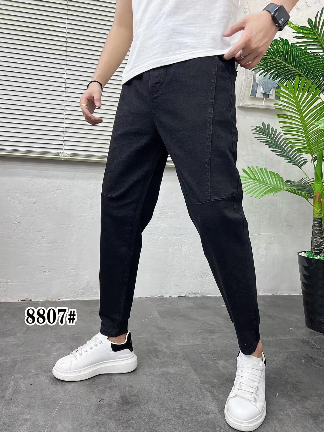 社會精神小伙褲子男牛仔褲修身百搭痞帥小腳褲黑武士束腳休閑褲潮