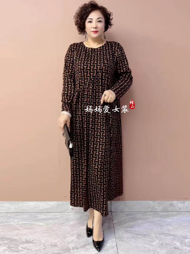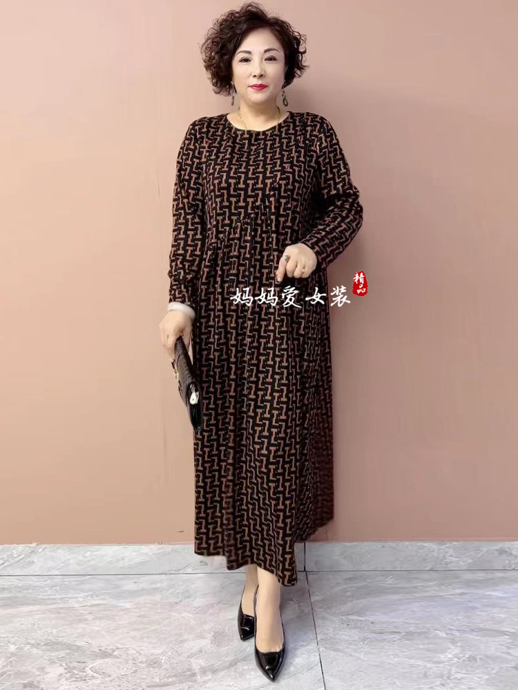 春秋時尚洋氣德絨中老年媽媽連衣裙