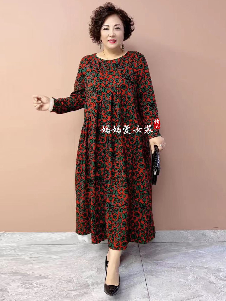 秋季長袖金貂絨大碼200斤連衣裙氣質胖媽媽加肥加大遮肉碎花長裙