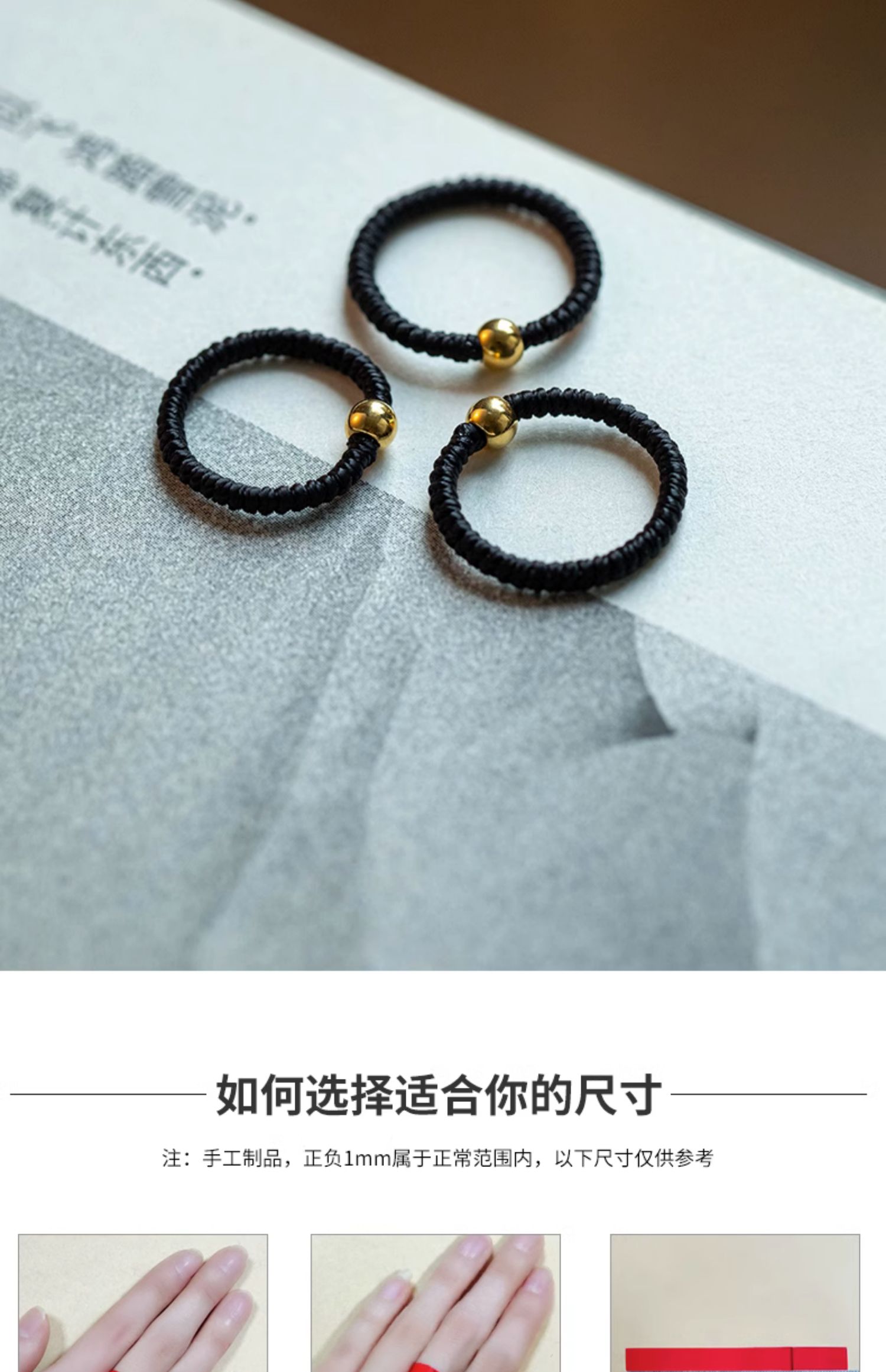 18k金芝麻珠黃金手工編繩特細戒指可調節疊戴小眾設計禮物指環