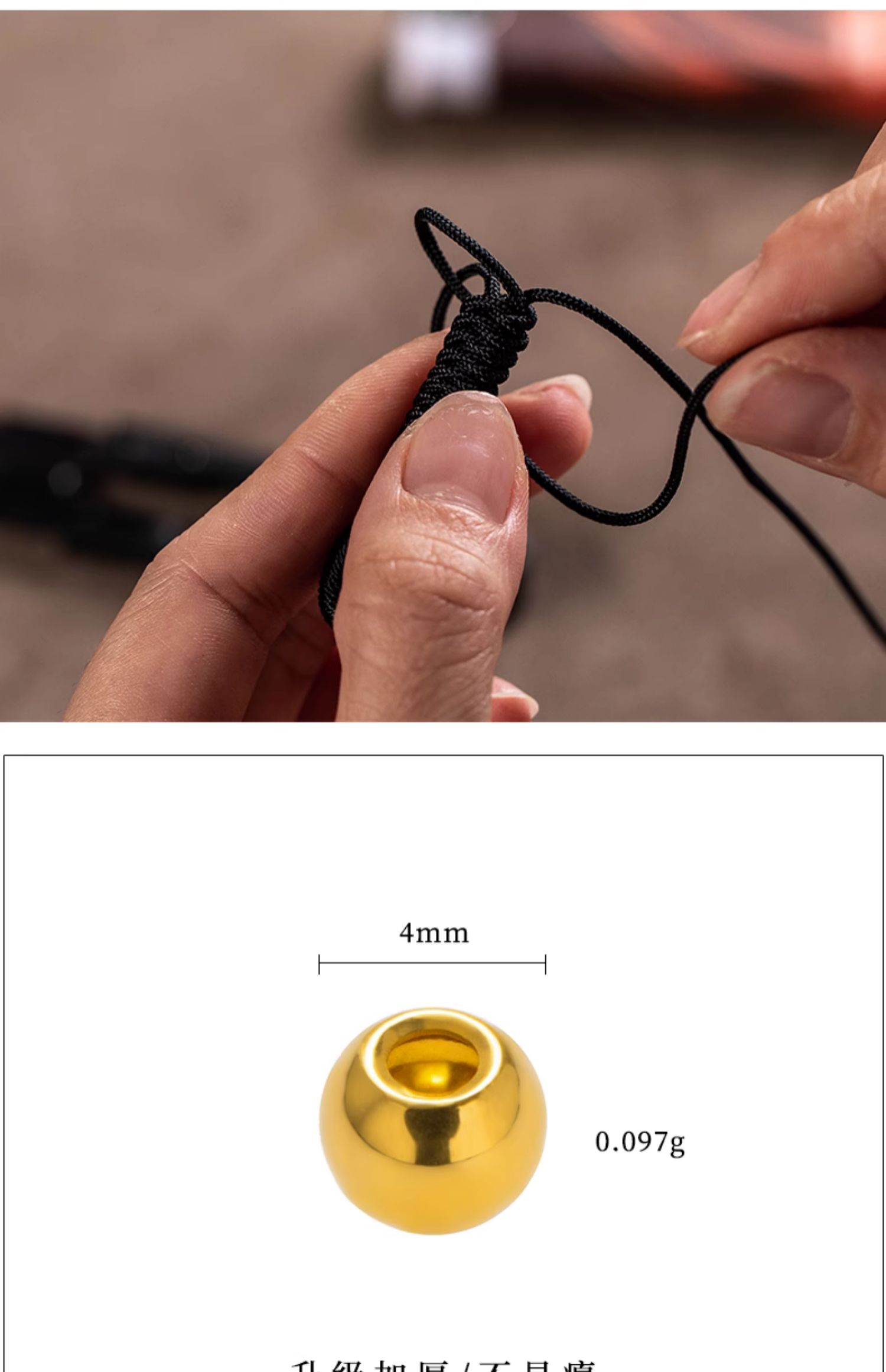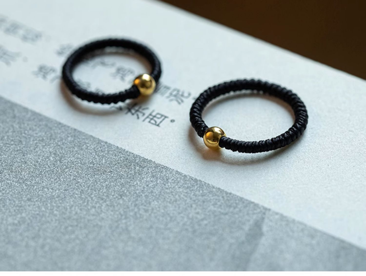 999足金小圓珠黃金戒指轉運珠手工編織繩男女款情人節小金珠對戒