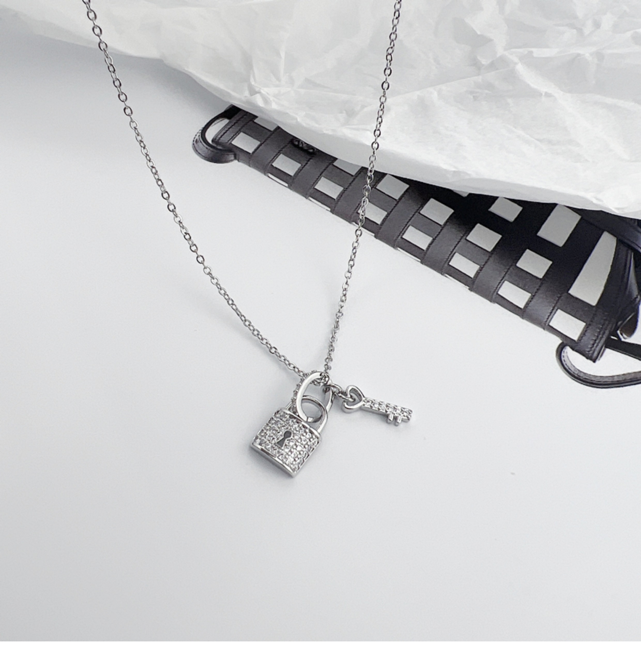 2023年新款高級感鎖頭鑰匙項鏈女生精致百搭小眾設計感輕奢鎖骨鏈
