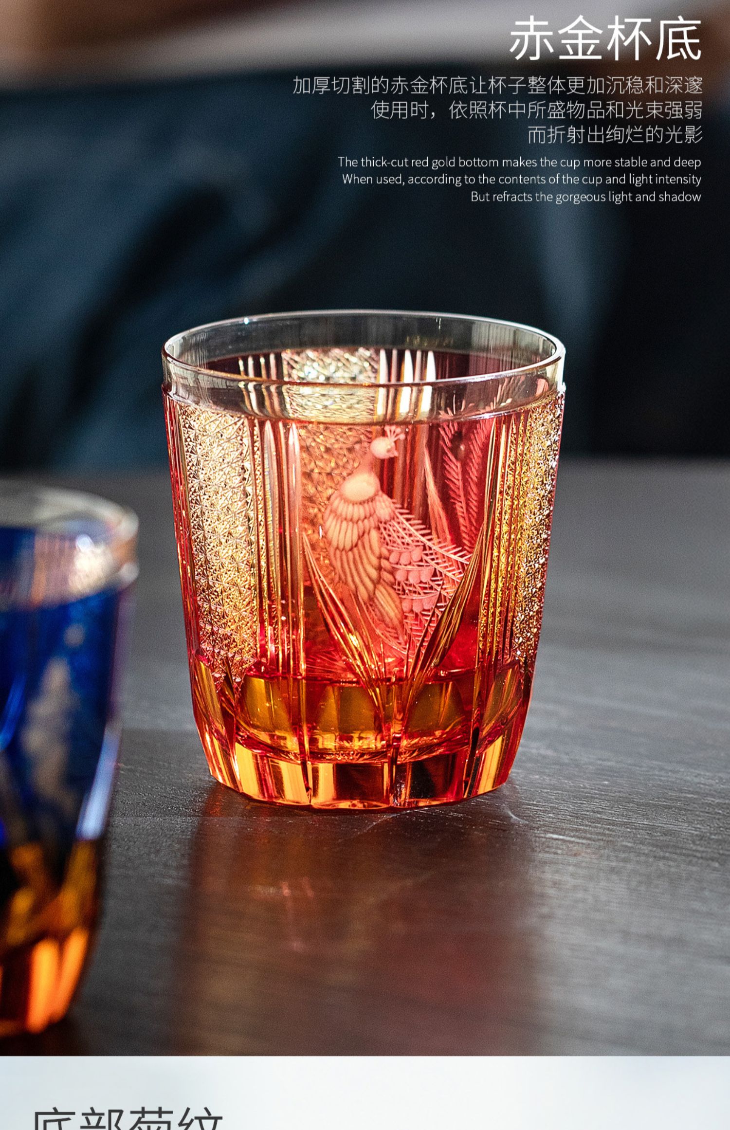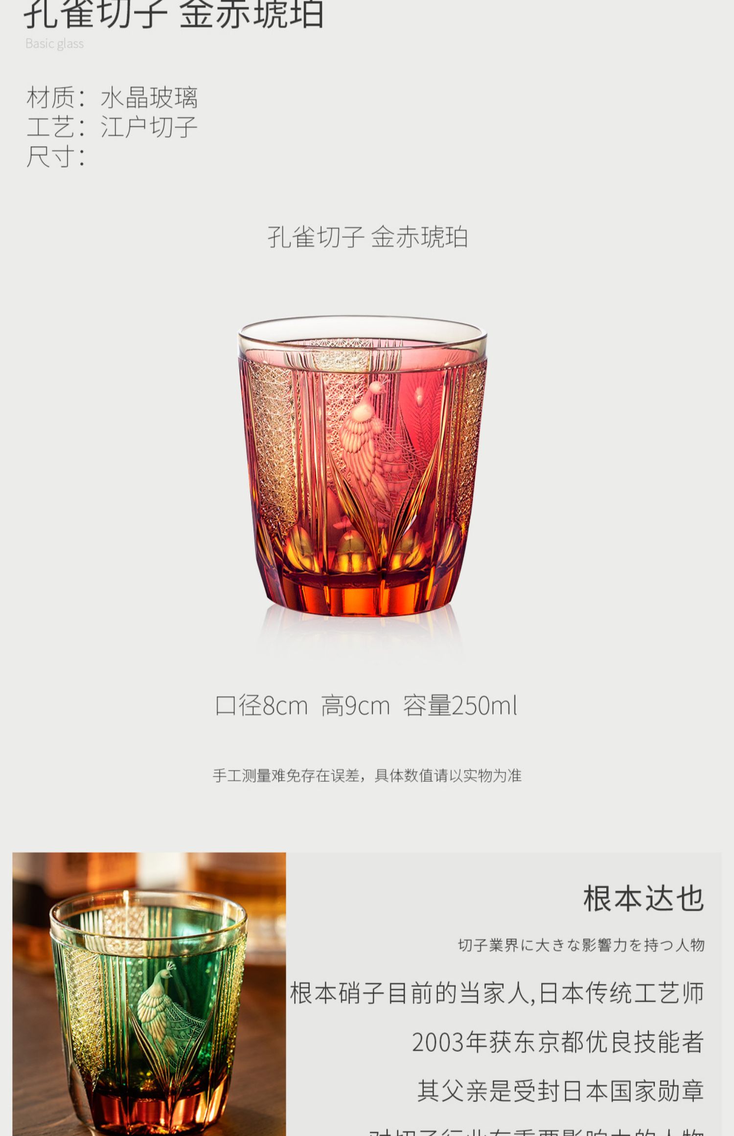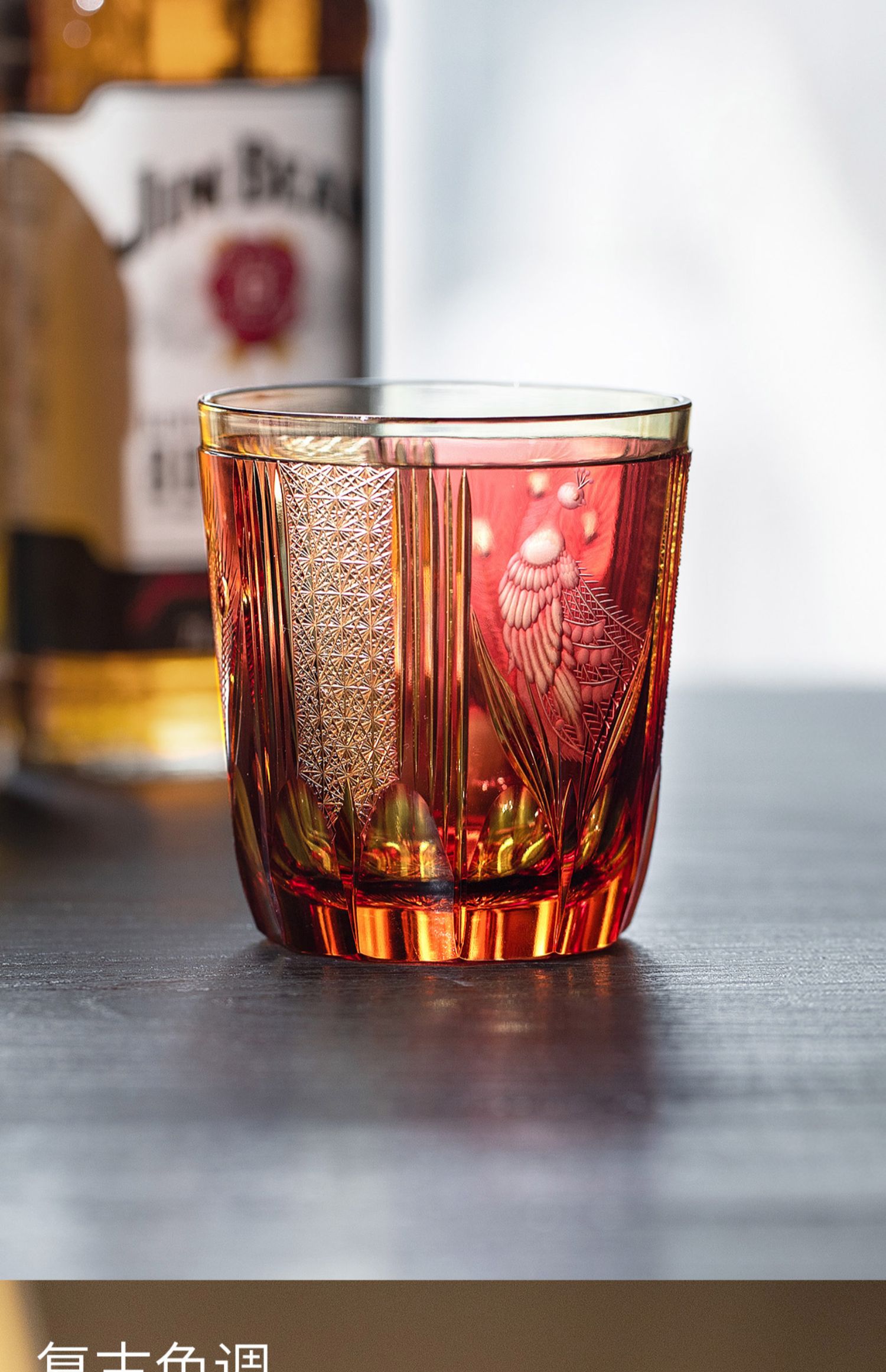根本達也金赤孔雀江戶切子水晶杯日式高檔珍藏版威士忌杯輕奢禮物