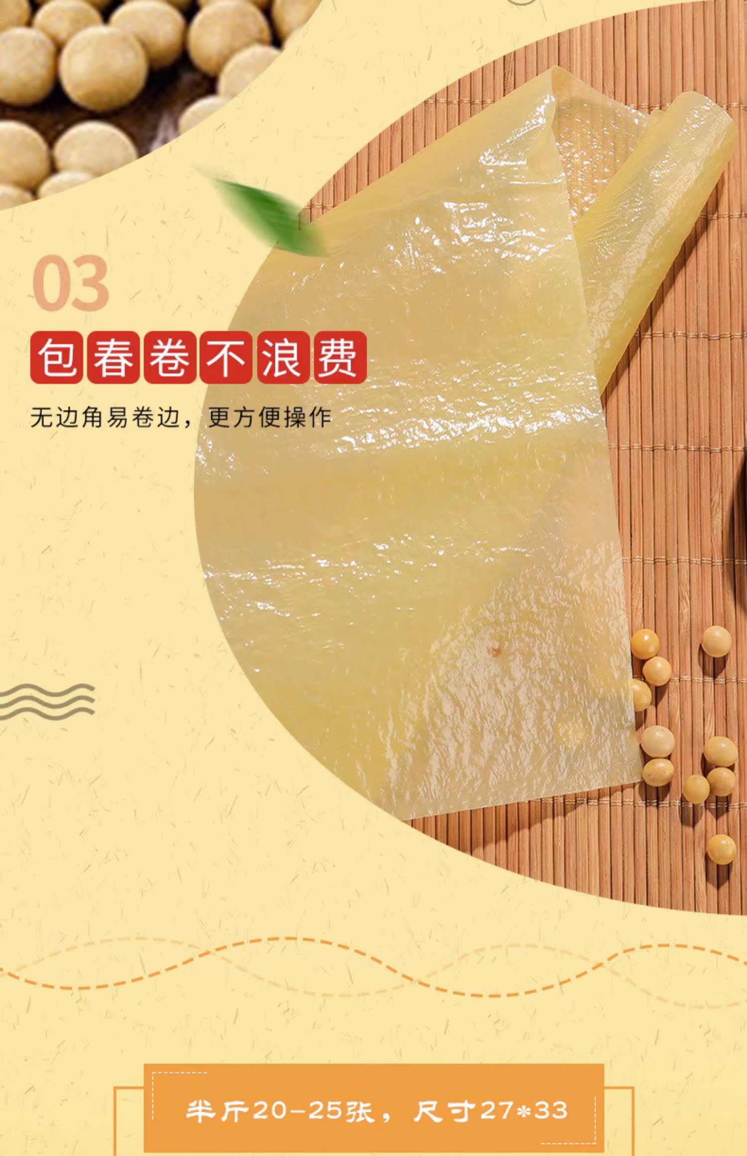頭層豆腐皮油豆皮五香卷皮春卷皮卷章皮餡料皮粿肉皮200g約30張