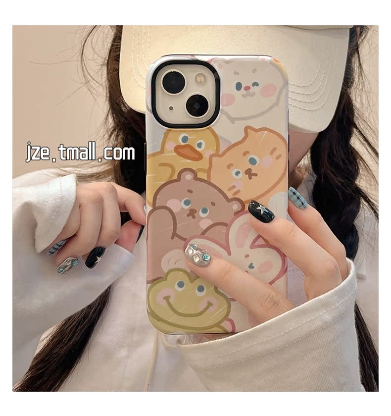 菲林可愛卡通動物適用蘋果14二合一手機殼iPhone13ProMax新款15防摔12女款11硬殼14pro全包小眾簡約創意15pro