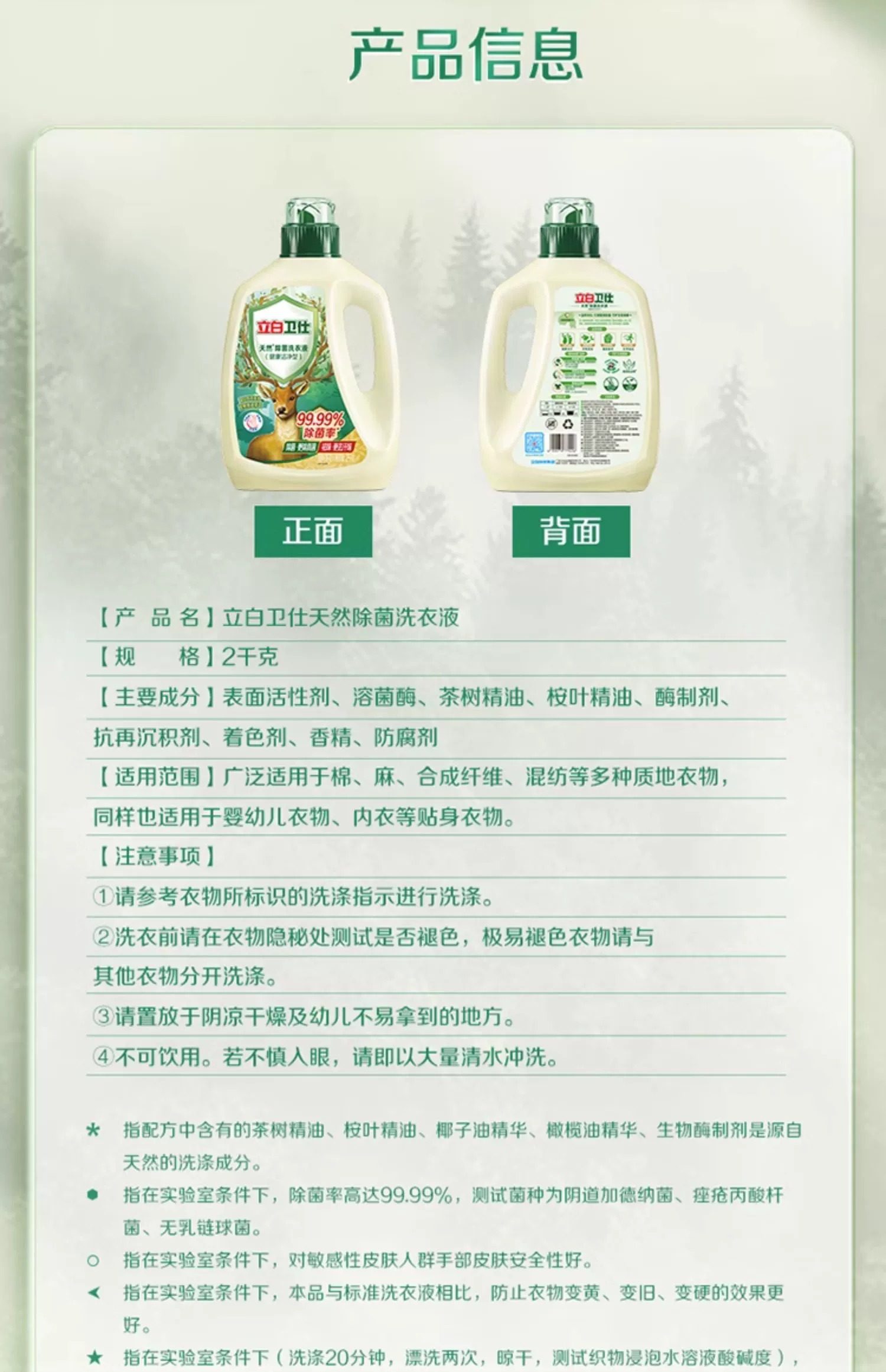 立白衛仕天然除菌洗衣液抑菌除真菌防霉祛味深層潔凈官方旗艦店