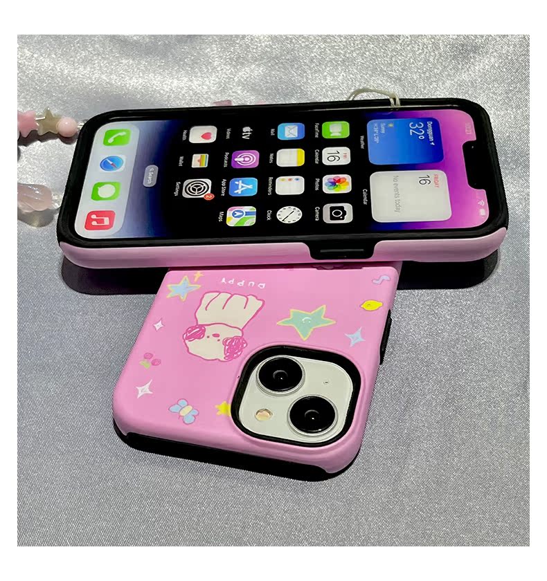 韓系彩色可愛動物帶支架適用蘋果13手機殼iphone14ProMax防摔14pro新款15硅膠11女款12情侶創意雙層全包軟殼