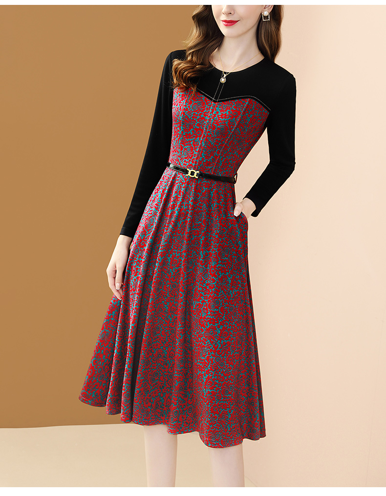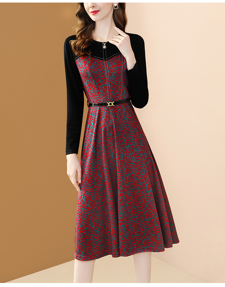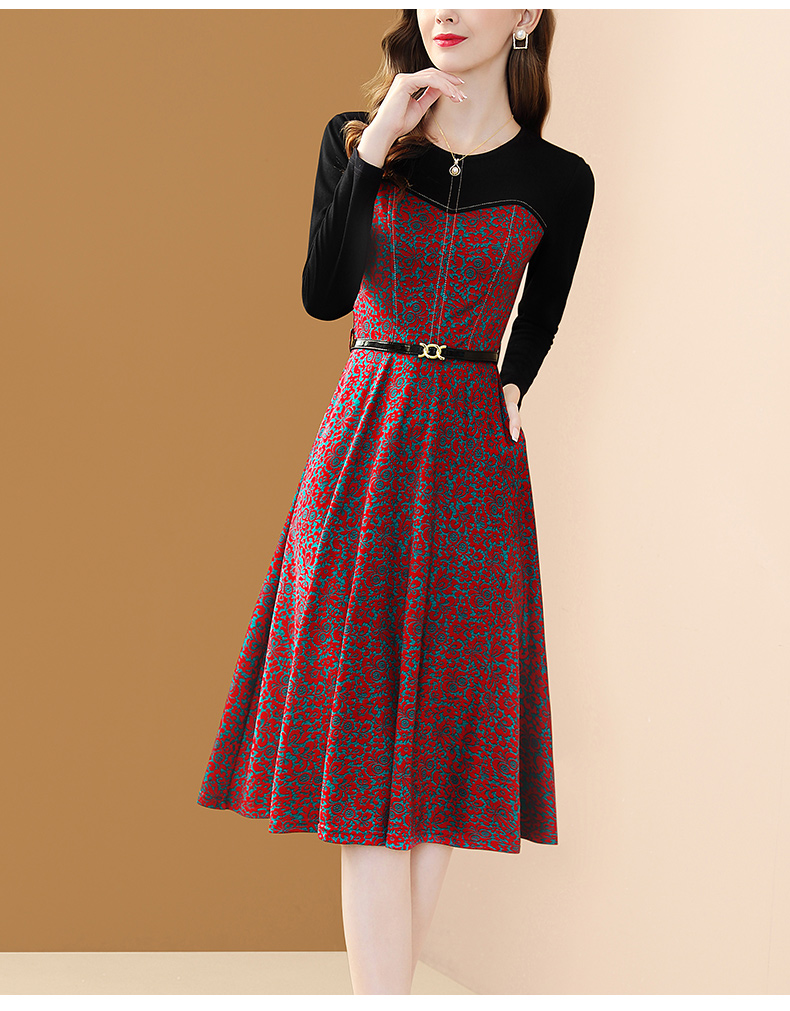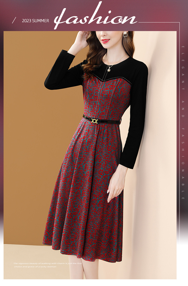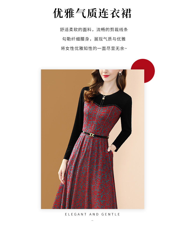 茗思高檔洋氣印花連衣裙女2023秋冬新款氣質長袖遮肚大擺顯瘦裙子