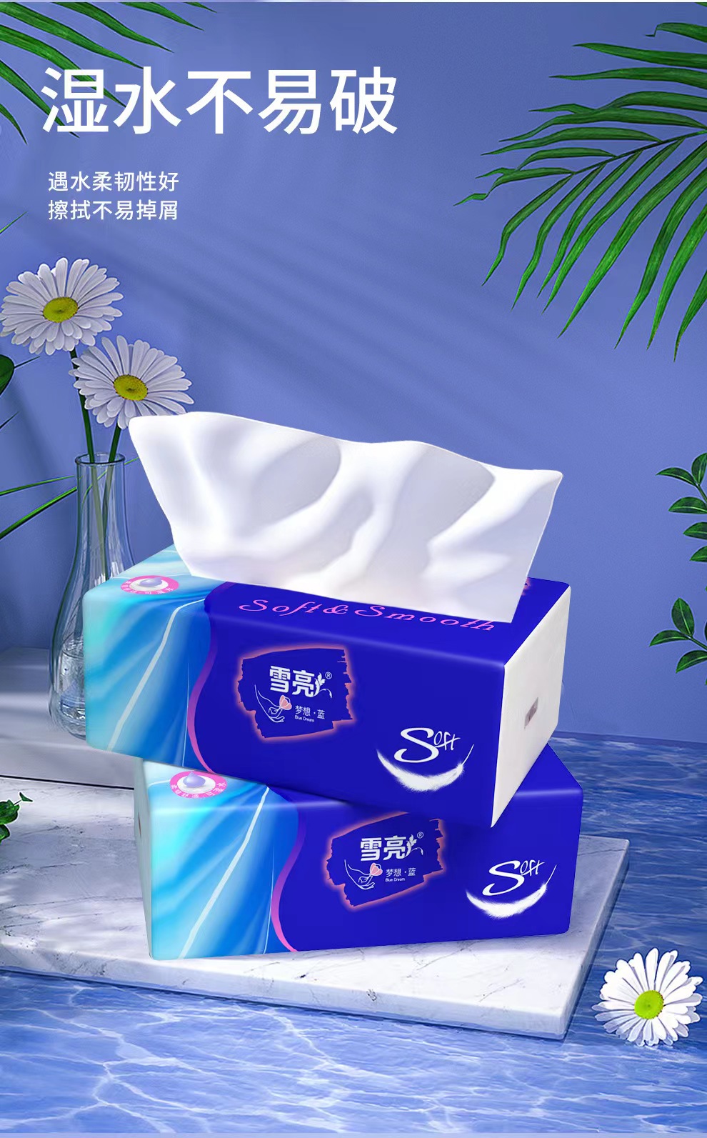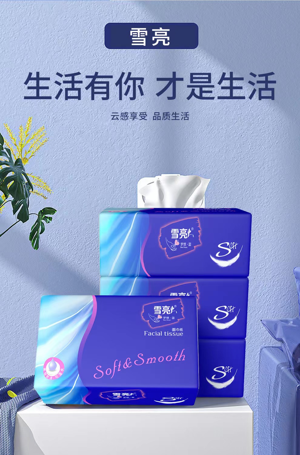 雪亮新品抽紙加長大包家用抽紙巾擦手紙4層加厚可濕水餐巾紙衛生