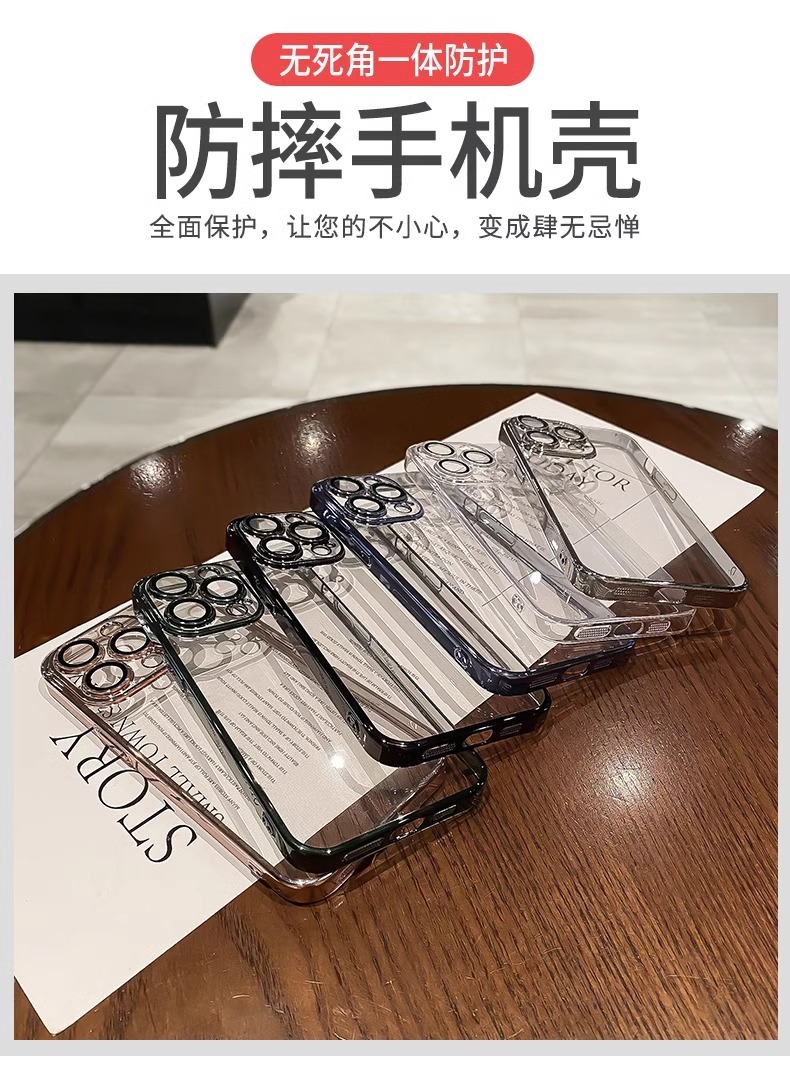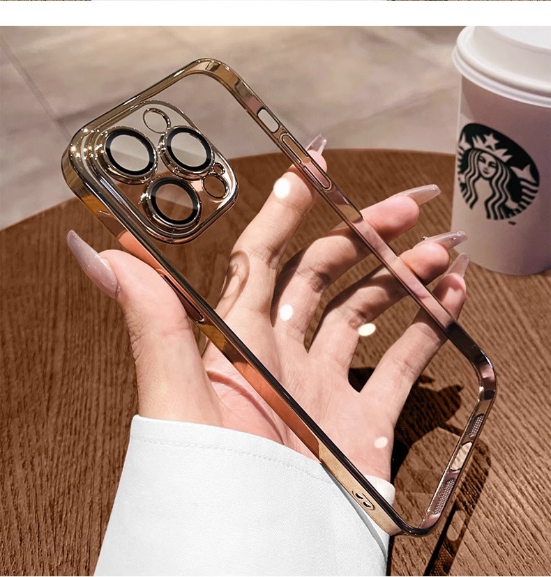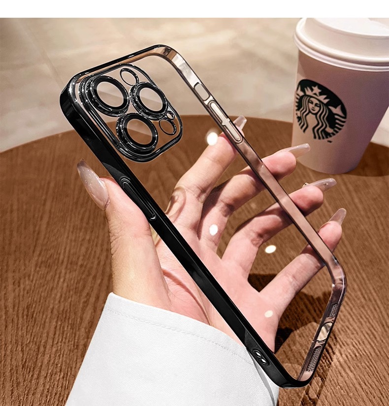 裸機手感適用蘋果15Promax手機殼自帶鏡頭膜電鍍簡約新款iPhone14pro透明女款防摔硬殼13PM男Plus硬殼12時尚
