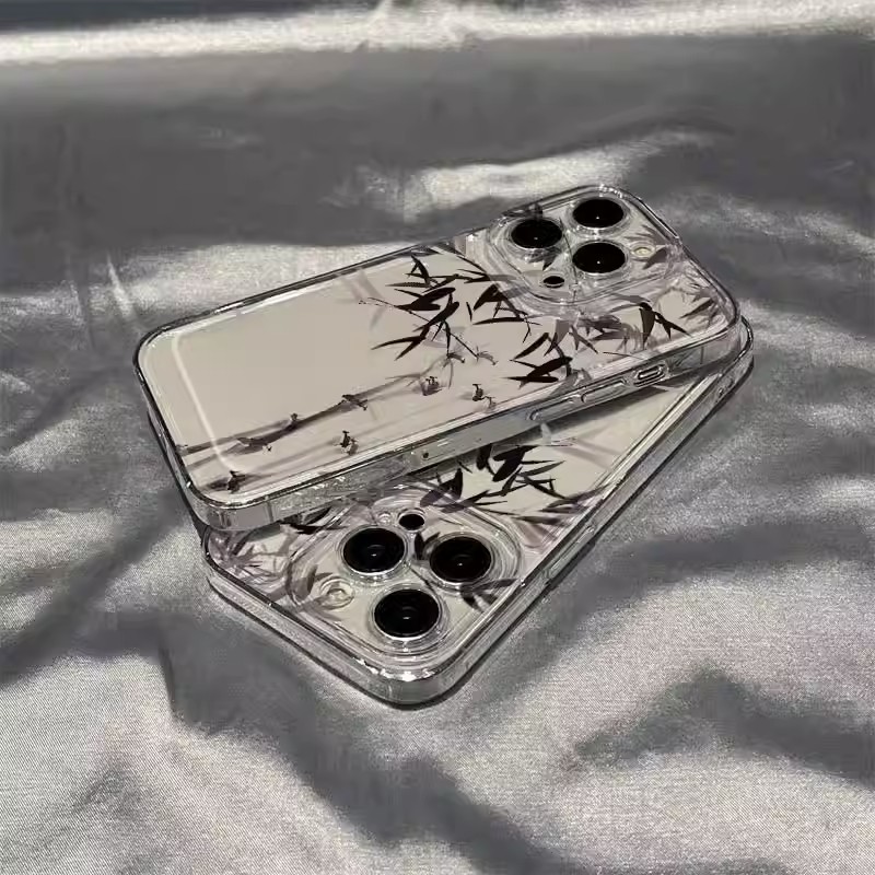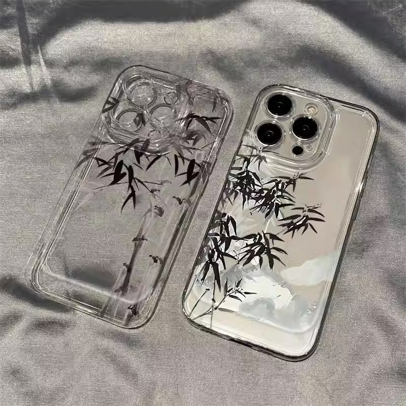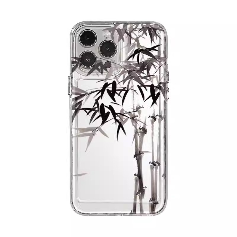 適用于水墨畫竹子蘋果15手機殼iPhonexr保護套魅族20軟殼opporeno9pro硅膠小米紅米10xpro防摔蘋果5新款鏡頭
