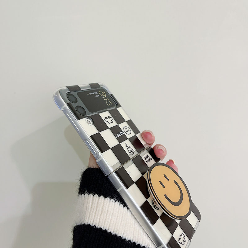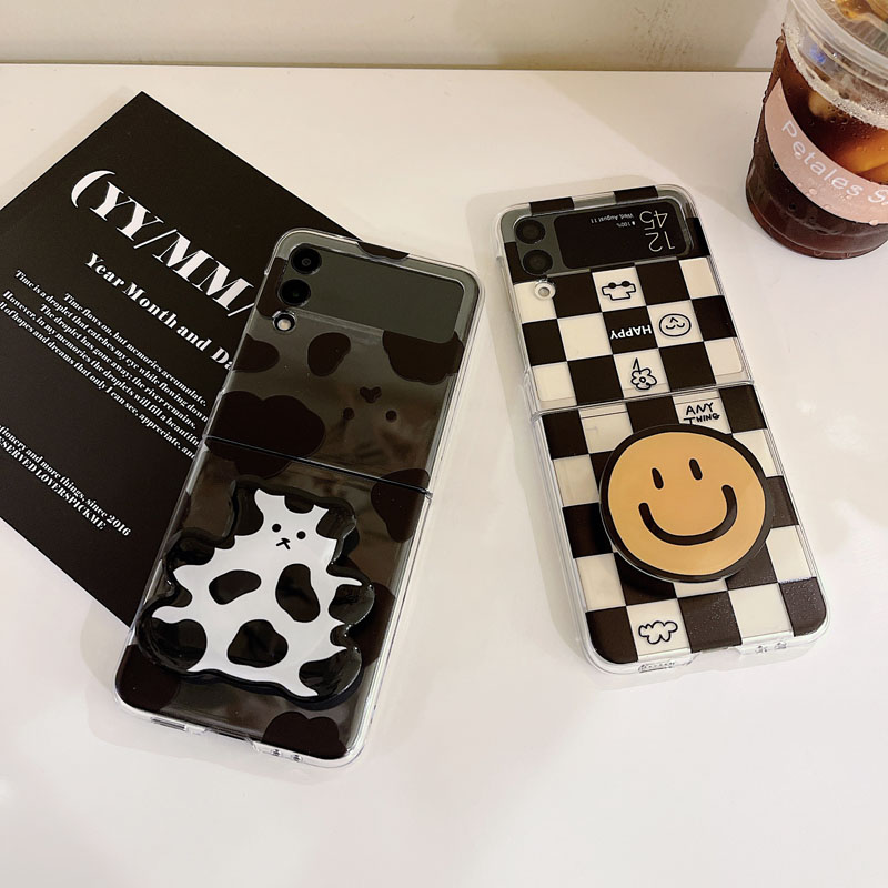 適用三星zflip5手機殼可愛卡通透明簡約黑色棋盤格奶牛紋硬殼防摔保護套三代新笑臉支架flip4小清新zflip 3女