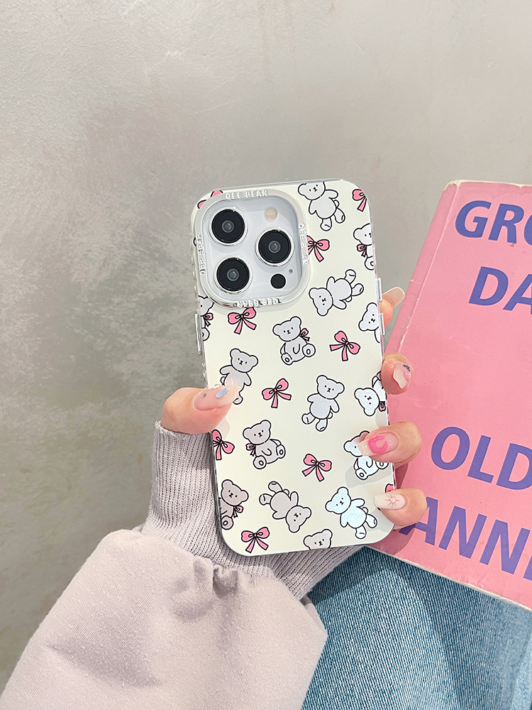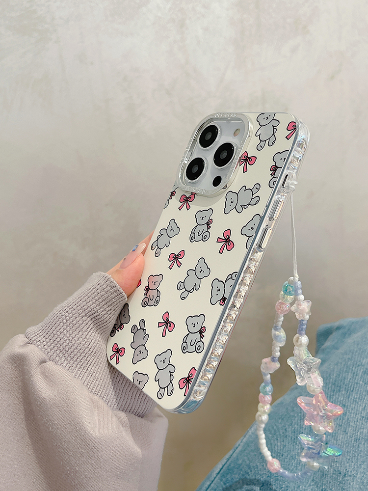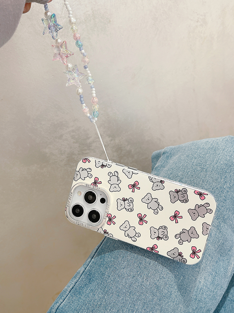 ins風可愛蝴蝶結小熊適用蘋果14promax手機殼iphone13pro小眾高級感12掛鏈11網紅超火max新款2023女款保護套