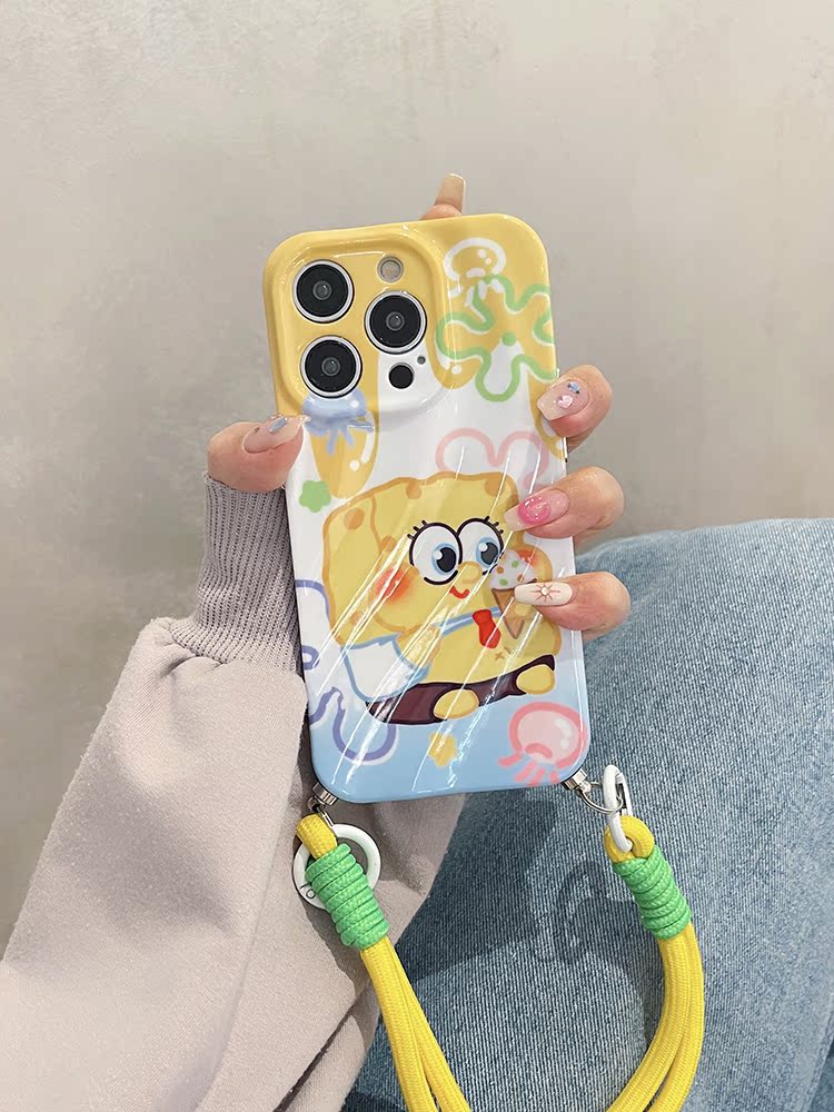 日系趣味可愛卡通動漫適用蘋果iphone14pro手機殼13掛繩手腕12promax超火11小眾高級感max情侶保護套防摔新款