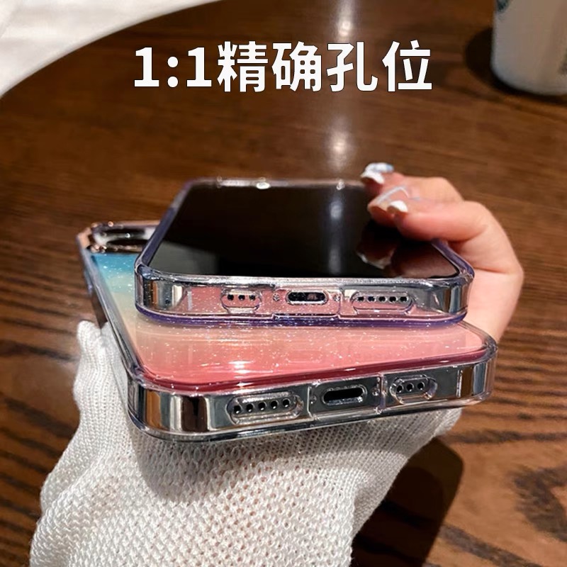 新款蘋果14透明閃粉漸變 13 12手機殼