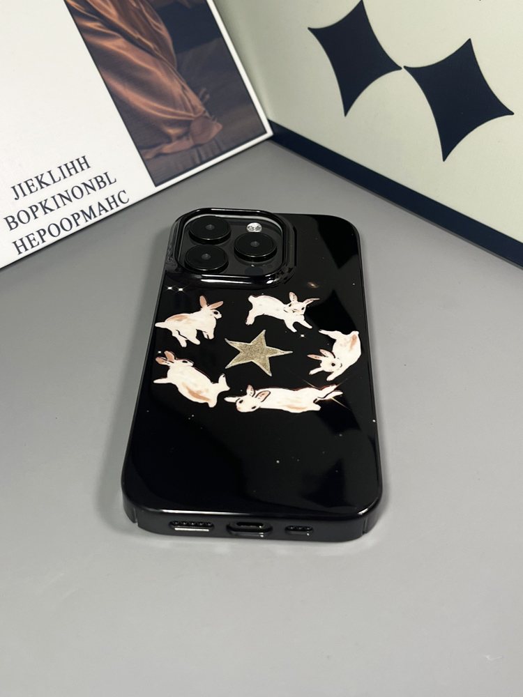 五兔圍星黑色小眾高級感情侶一對適用iPhone15手機殼磨砂ins風蘋果14硬殼半包新款復古趣味小米13華為mate60