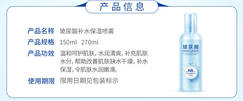 玻尿酸補水噴霧爽膚保濕水非修護敏感肌化妝滋潤正品濕敷男女護膚