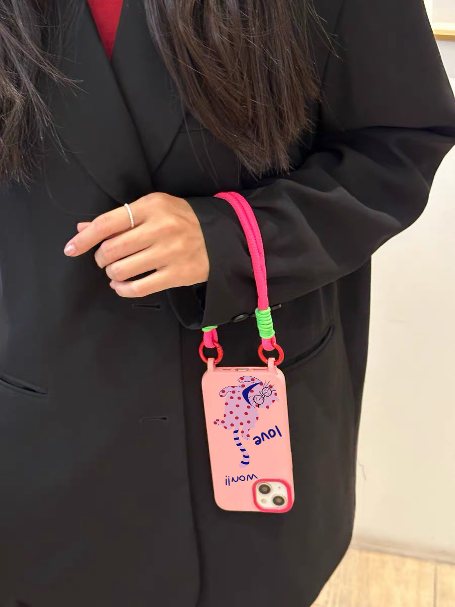 潮牌粉色斑點貓適用蘋果13手機殼iphone14promax新款11創意掛繩手提斜挎12女款13pro軟硅膠防摔xsmax保護套xr