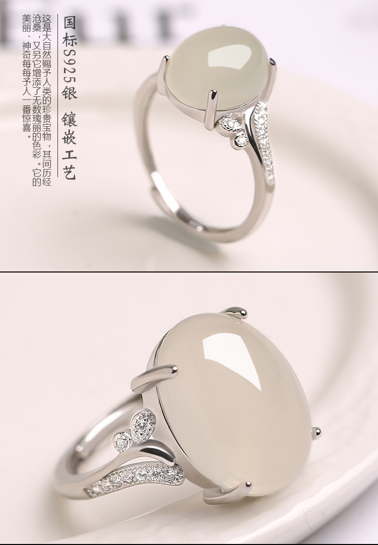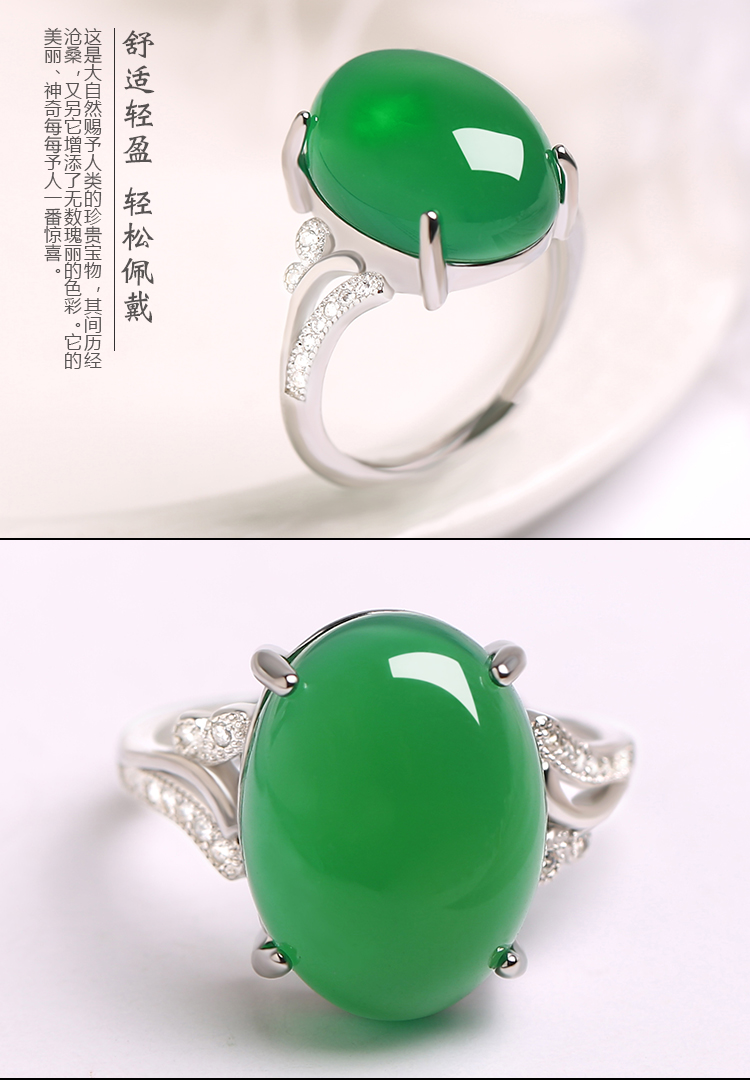 氣質祖母綠瑪瑙玉髓925純銀戒指環