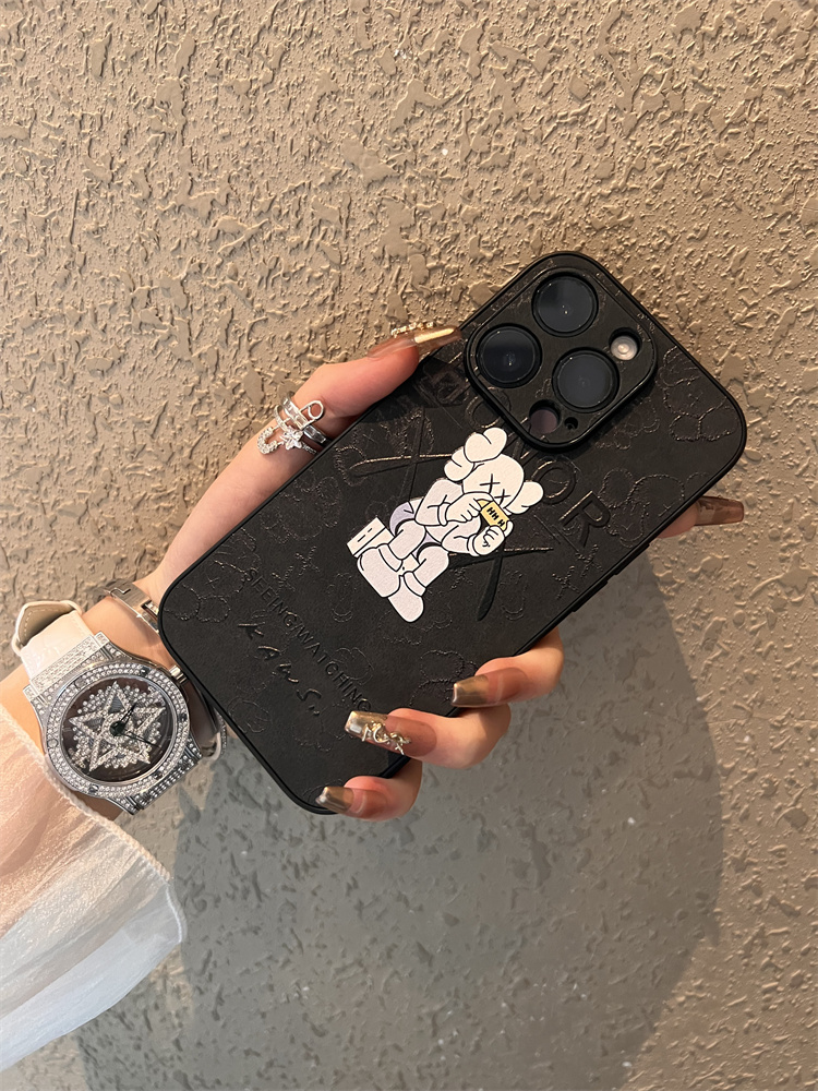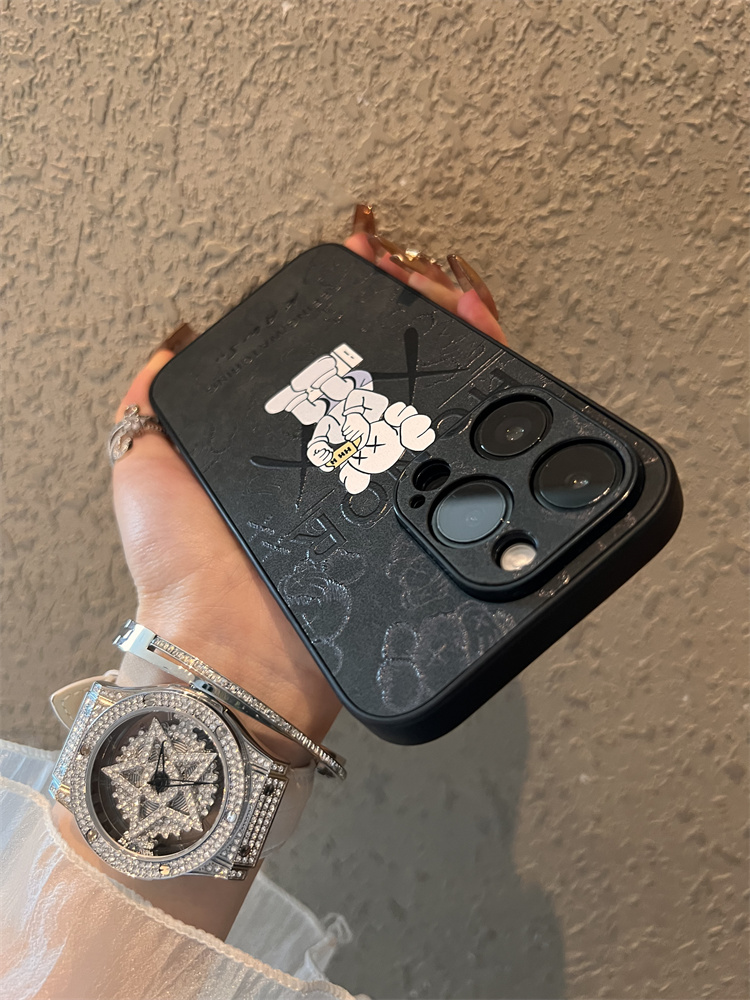 黑皮質白色KAWS蘋果15手機殼蘋果14新款iphone15promax高級感13套12防摔15Ultra全包ProMax硅膠Pro女PM男適用