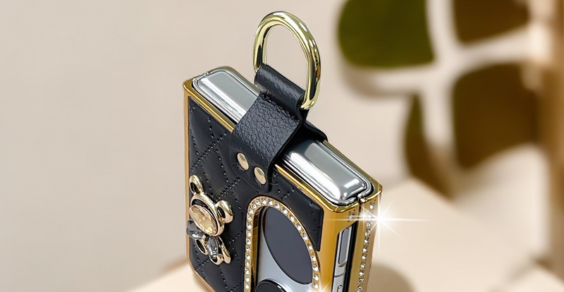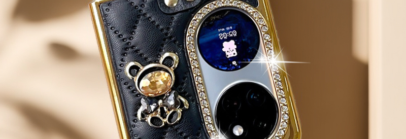 機域適用華為pocket s手機殼折疊屏高級鉆石奢華皮質寶盒翻蓋可愛小熊p50 pocket時尚電鍍氣質女高檔指環防摔