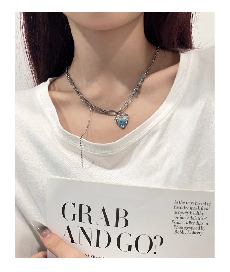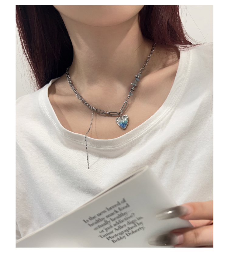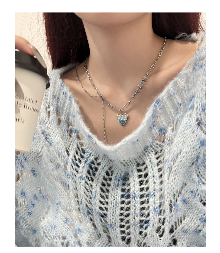KNASAI藍色鋯石愛心拼接項鏈女輕奢小眾ins冷淡風設計感個性配飾
