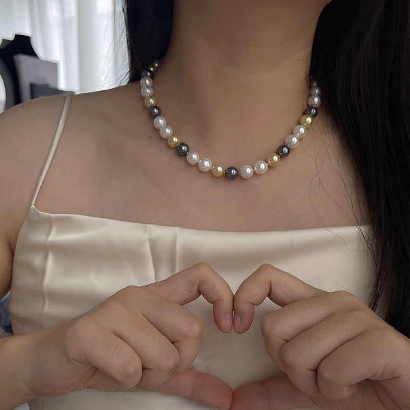 倪妮同款大溪地色漸變大顆珍珠項鏈輕奢小眾鎖骨鏈女高級感百搭潮