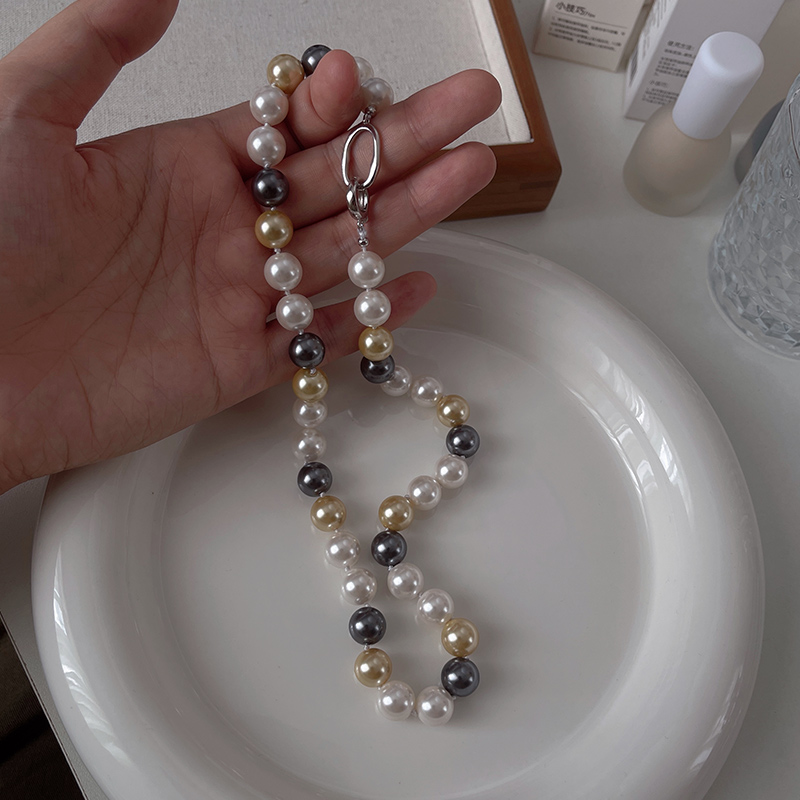 倪妮同款大溪地色系大串珠項鏈水晶珍珠鎖骨鏈輕奢設計漸變小眾女
