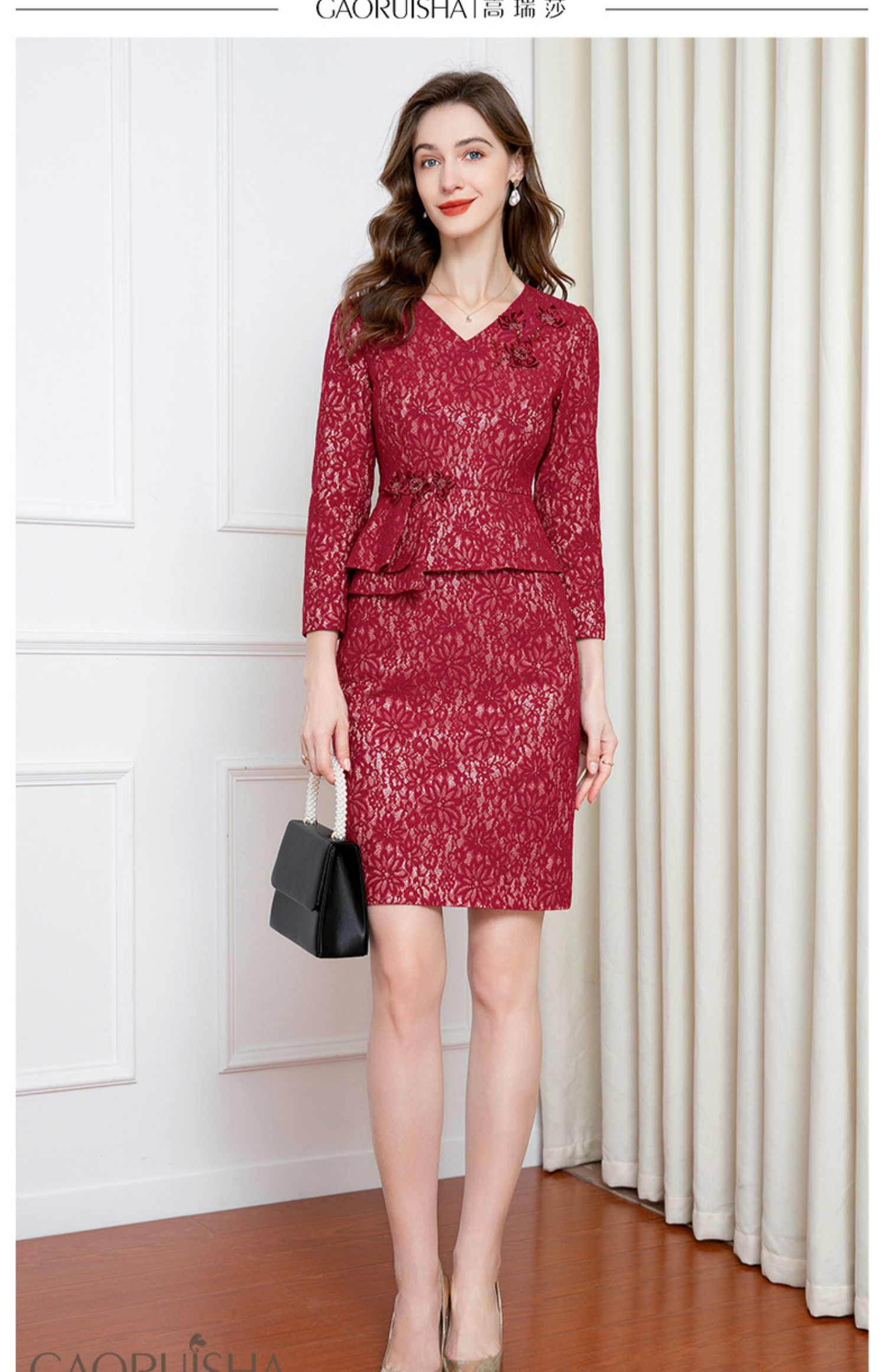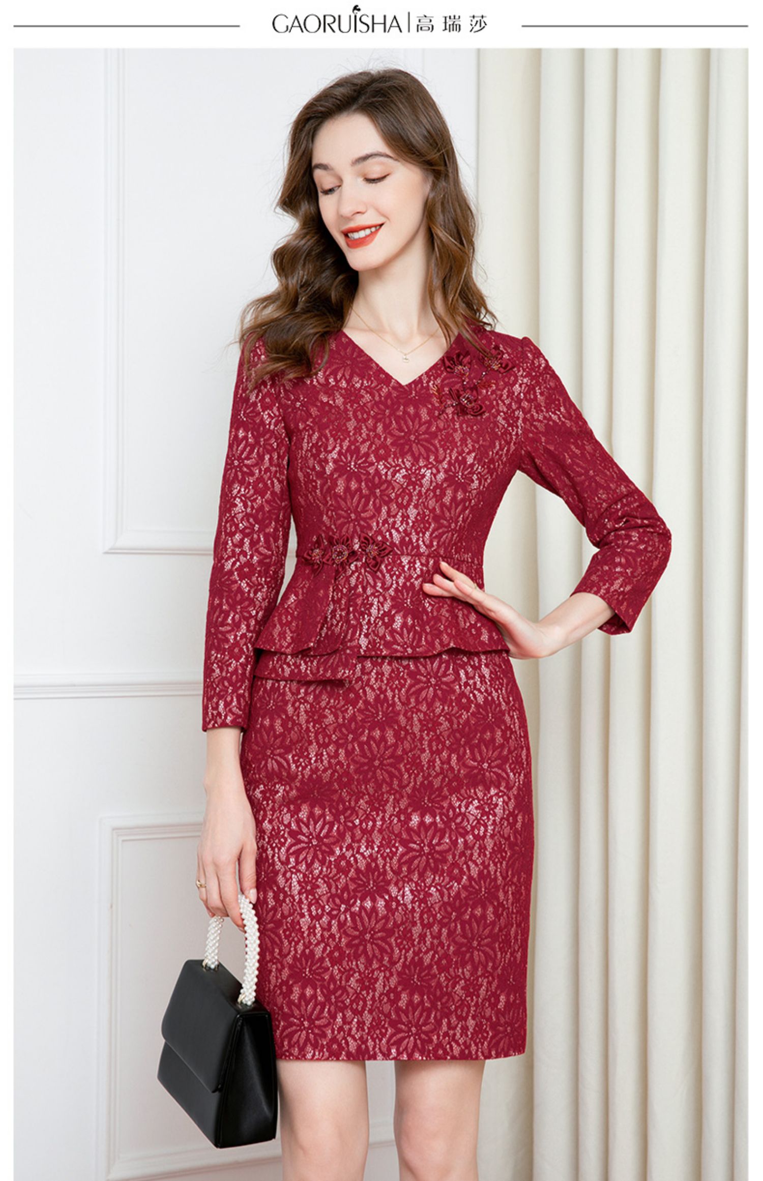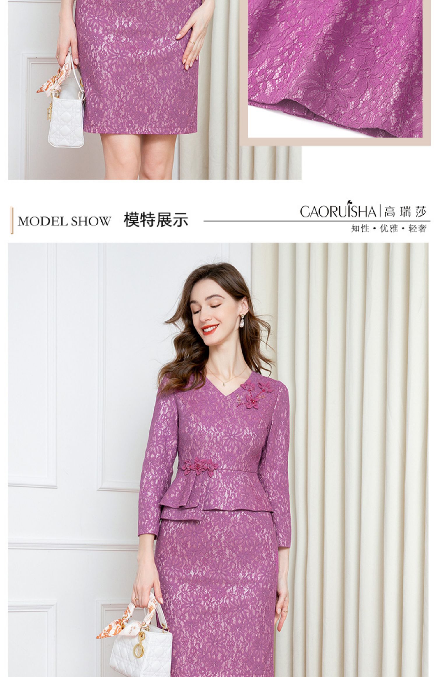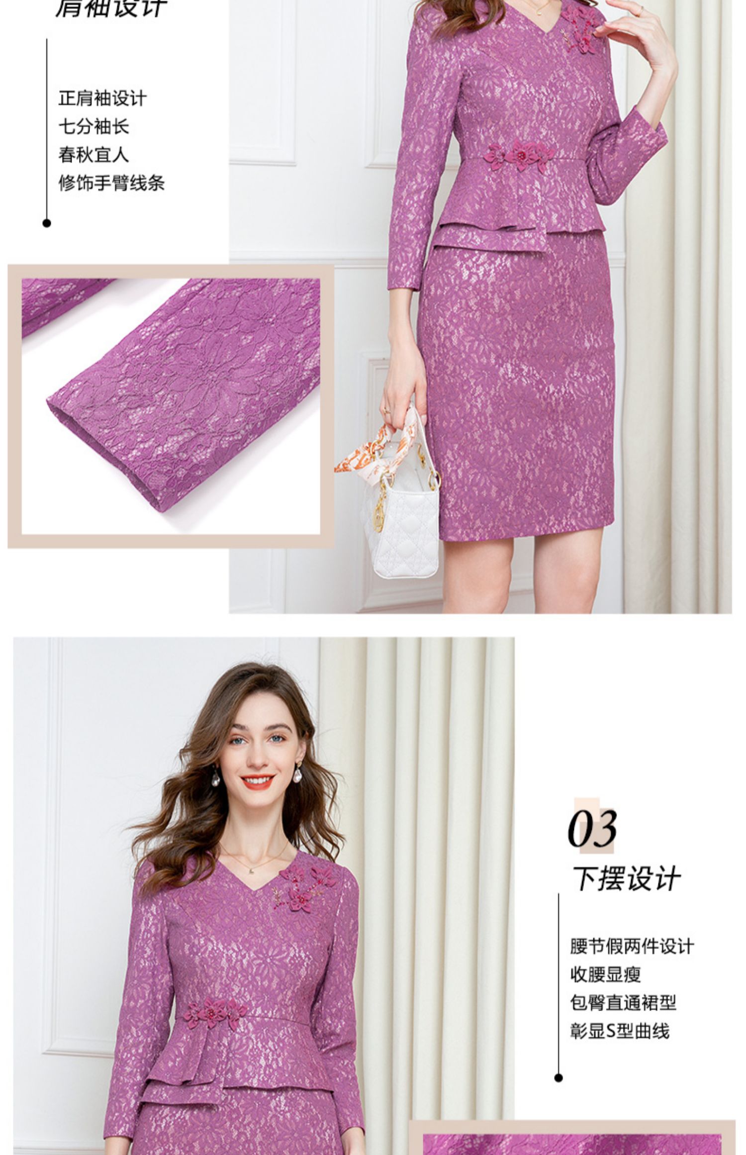 高瑞莎秋季2023新款女裝兩件套裙粉色氣質女士套裝修身中年媽媽裝