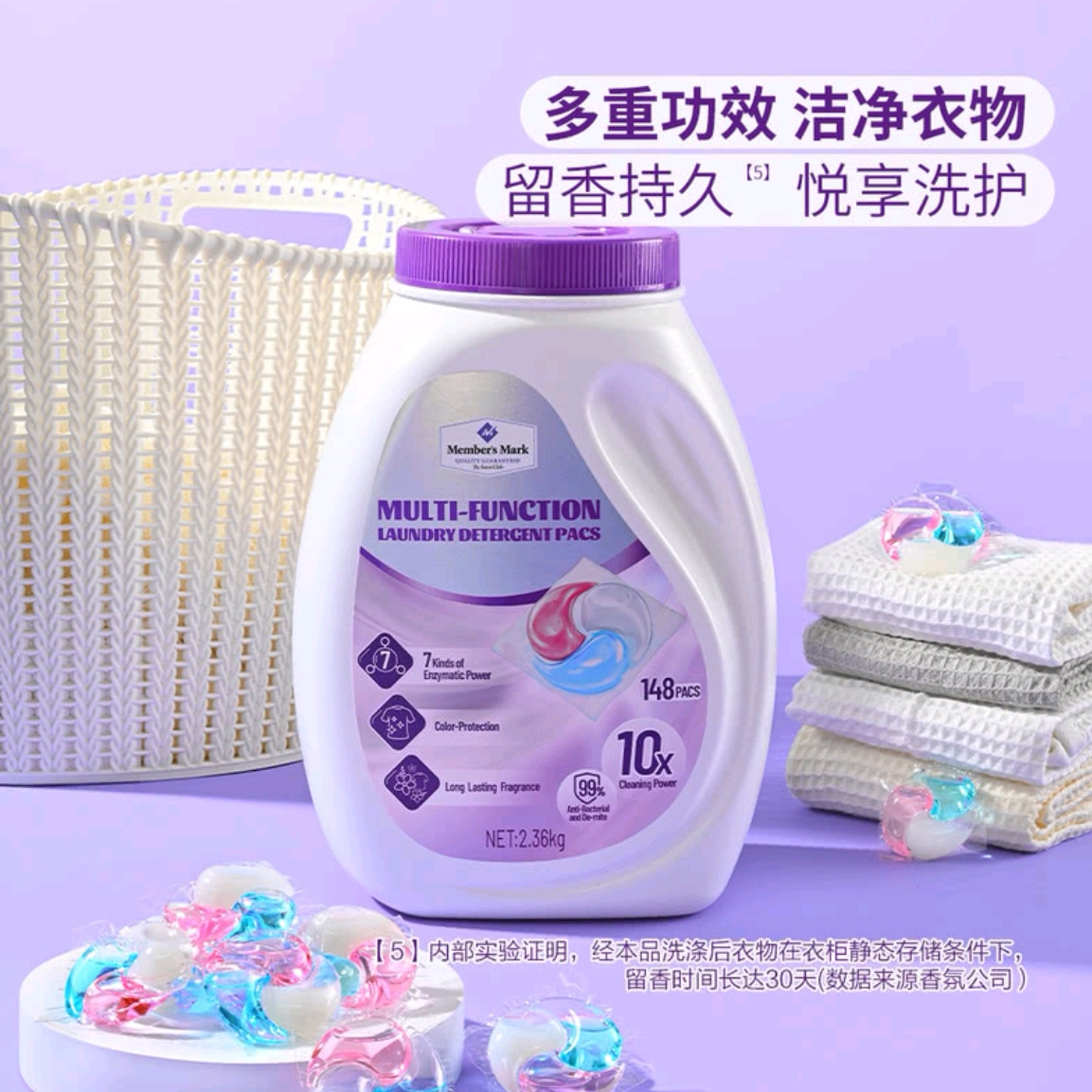 山姆代購除菌除螨多效洗衣凝珠10倍潔凈護色防染持留香濃縮洗衣液
