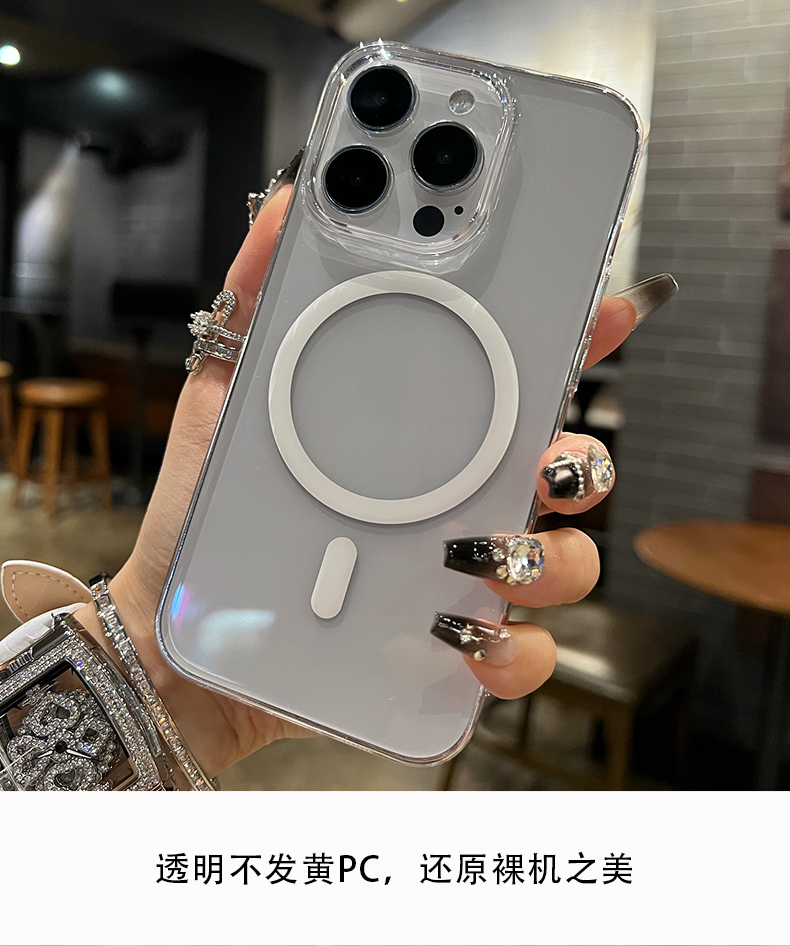 軒晴 高品質不發黃iphone15/15pro手機殼磁吸充電超薄裸機15plus透明硬殼適用蘋果14proMax簡約12/13保護套潮