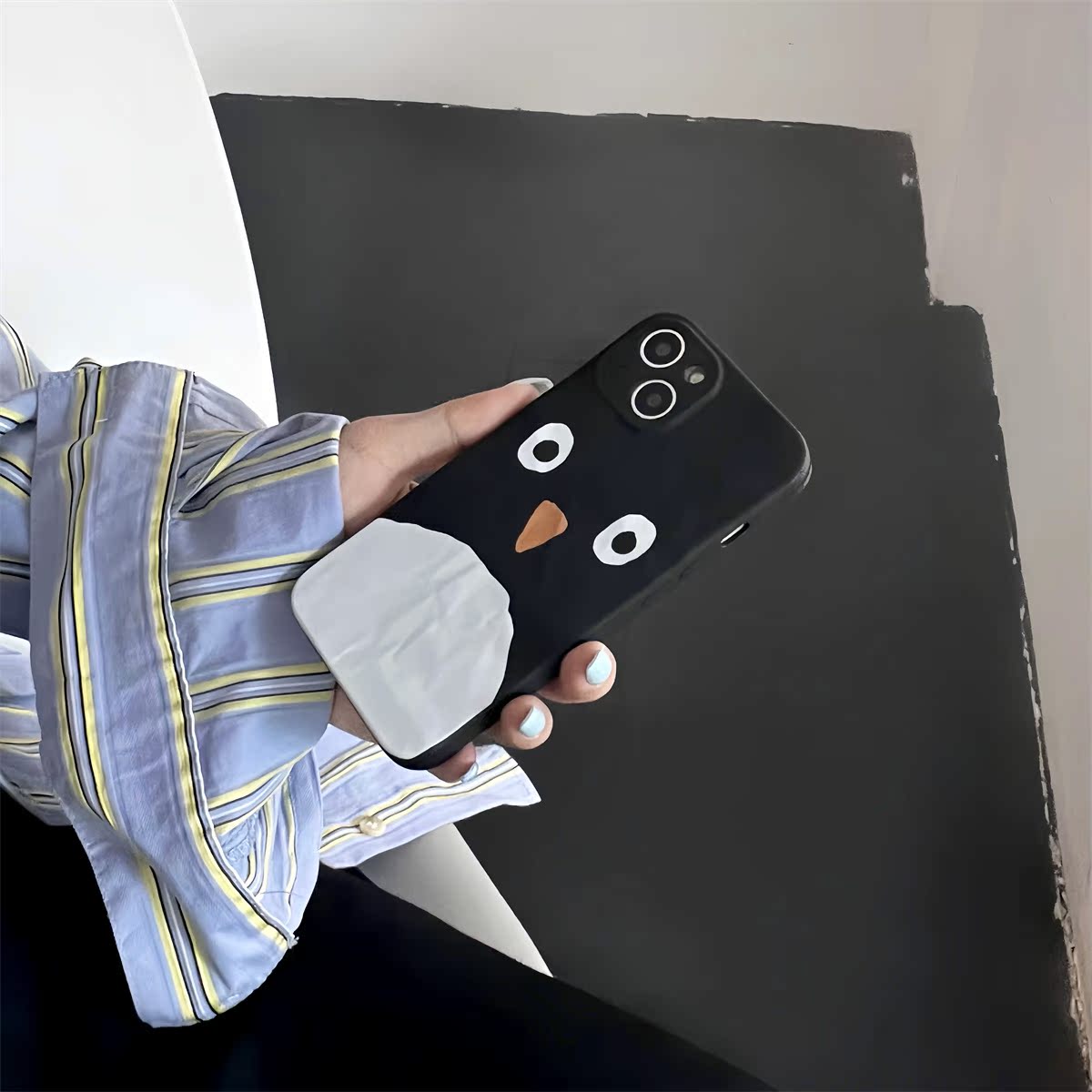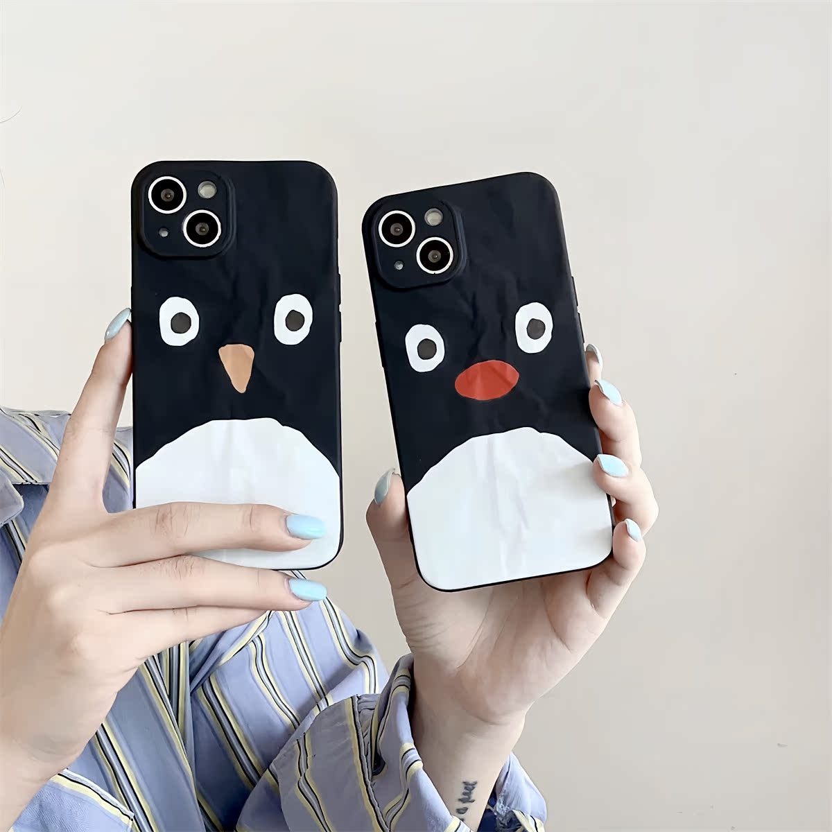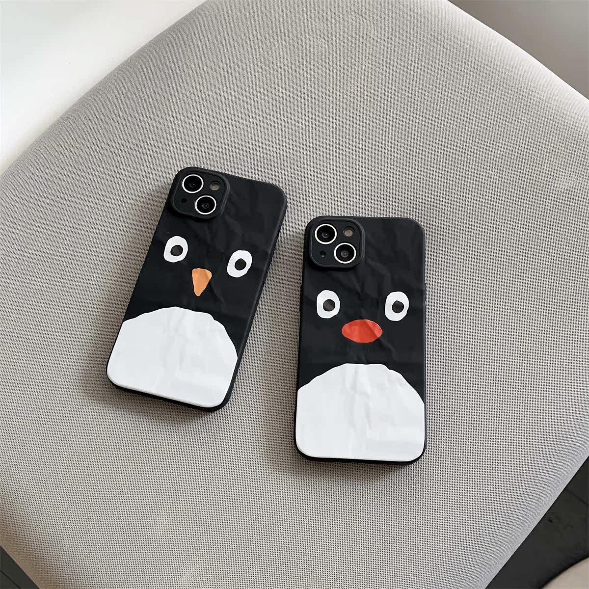 適用立體皺褶暗黑色企鵝蘋果14手機殼iphone12女13男14promax新款大孔鏡頭por防摔十一保護套高級感桌球個性