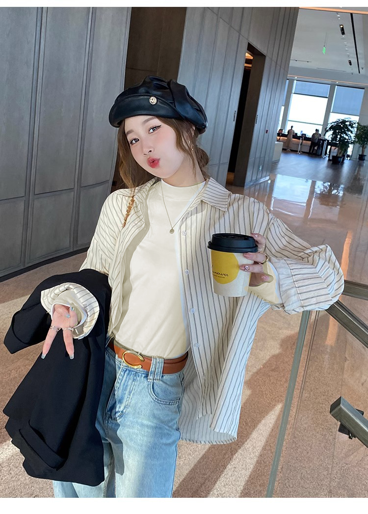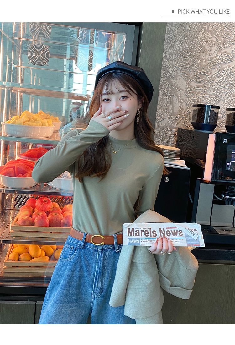「夏秋」純欲軟糯嬰兒絨細魚骨弧邊U領顯胸打底衫設計感長袖正肩