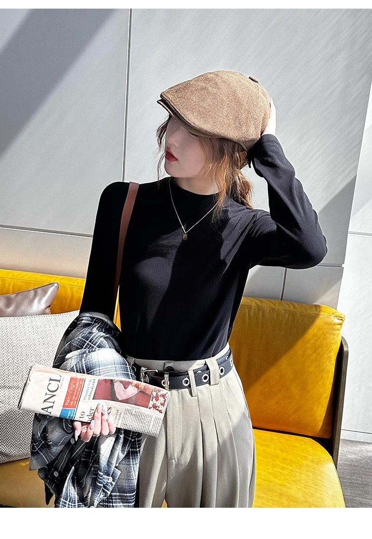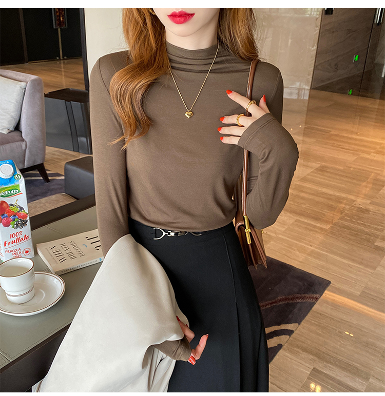 多巴胺打底衫雙面磨毛新款女秋冬內搭半高領洋氣黑色中領長袖上衣