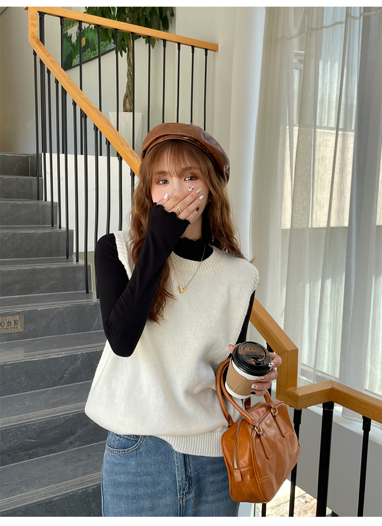 純欲軟糯嬰兒絨細魚骨弧邊U領顯胸打底衫設計感長袖正肩「夏秋」