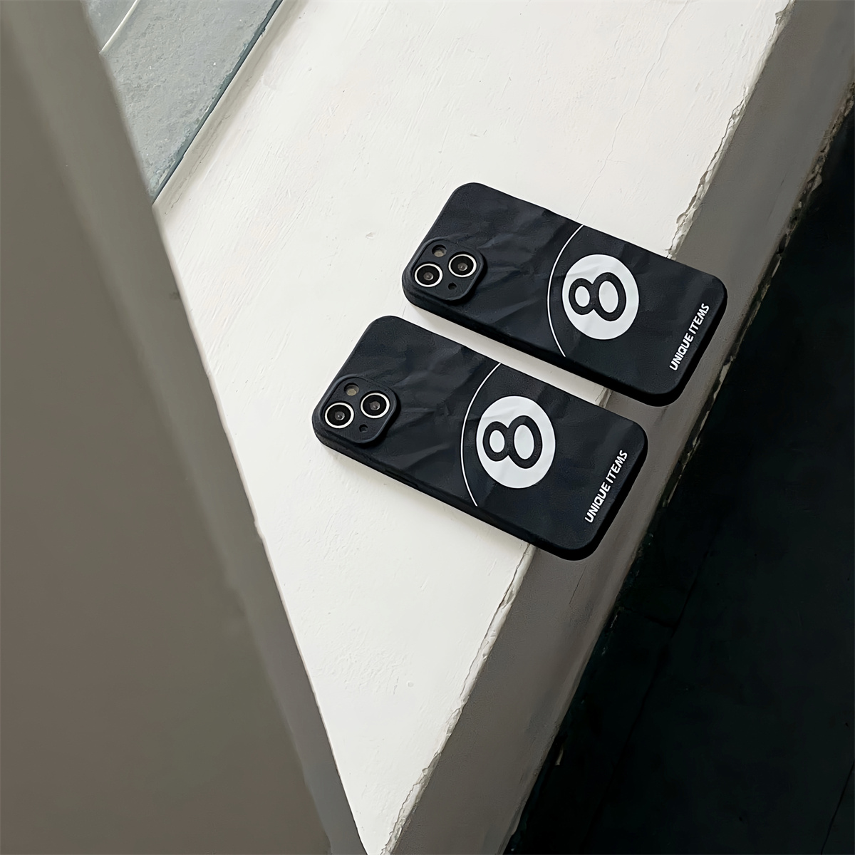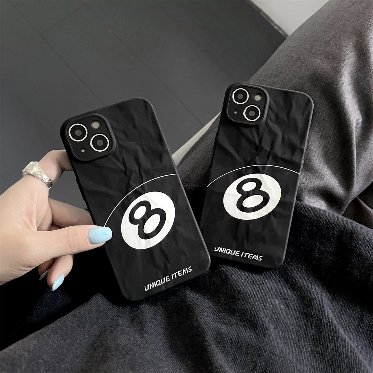 適用立體皺褶暗黑色黑八8蘋果14手機殼iphone12女13男14promax新款大孔鏡頭por防摔十一保護套高級感桌球個性