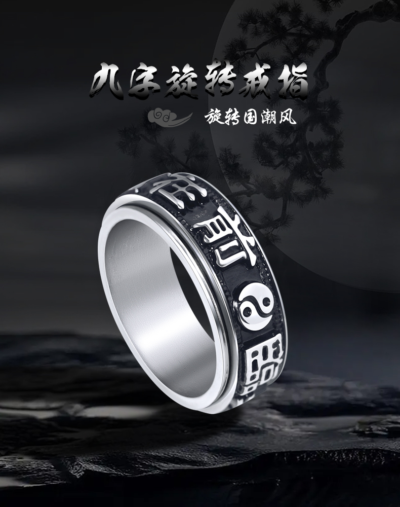 復古可轉動男士戒指鈦鋼潮男個性高級感單身旋轉指環食指潮牌網紅
