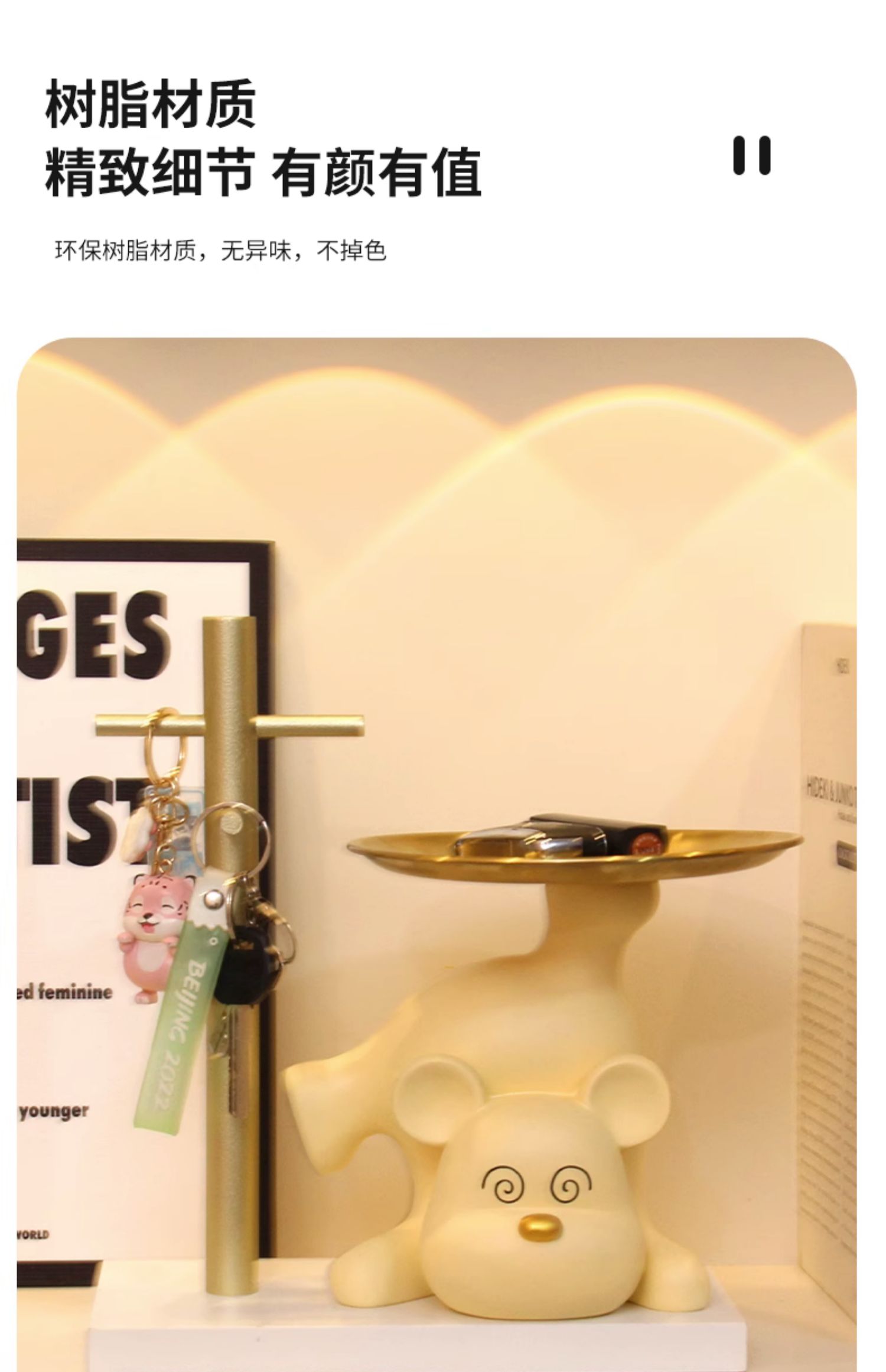 創意暈暈暴力熊玄關鑰匙收納擺件巴多胺色可愛熊裝飾喬遷新居送禮