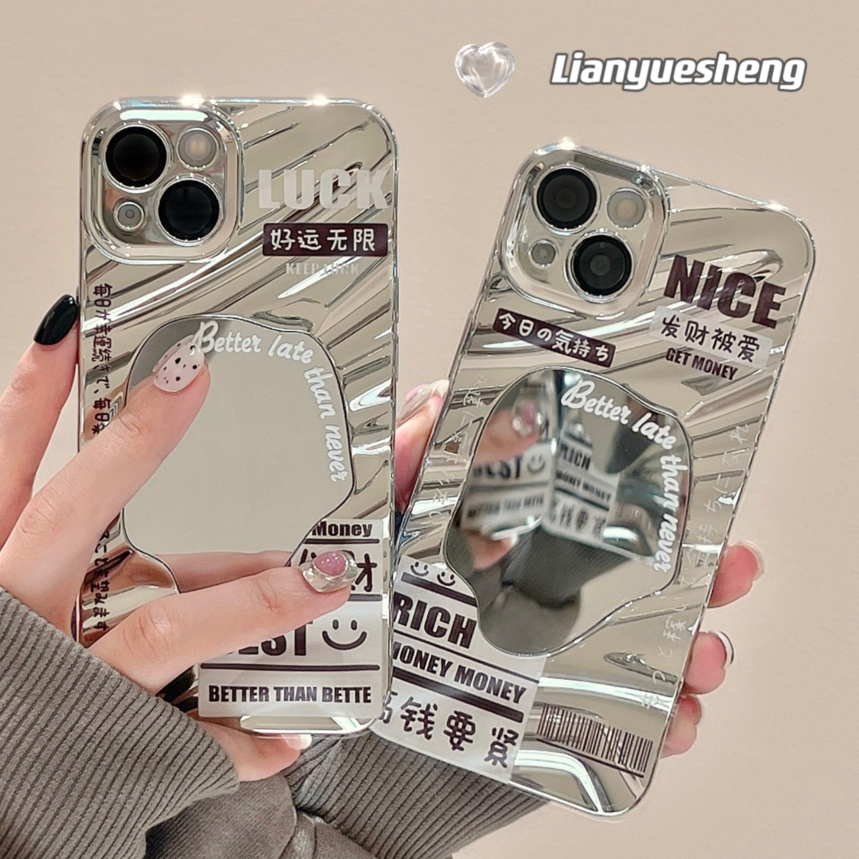 適用蘋果15手機殼iPhone15promax搞錢要緊補妝鏡14promax新款文字超火13高級感12女款11爆款全包鏡頭保護套