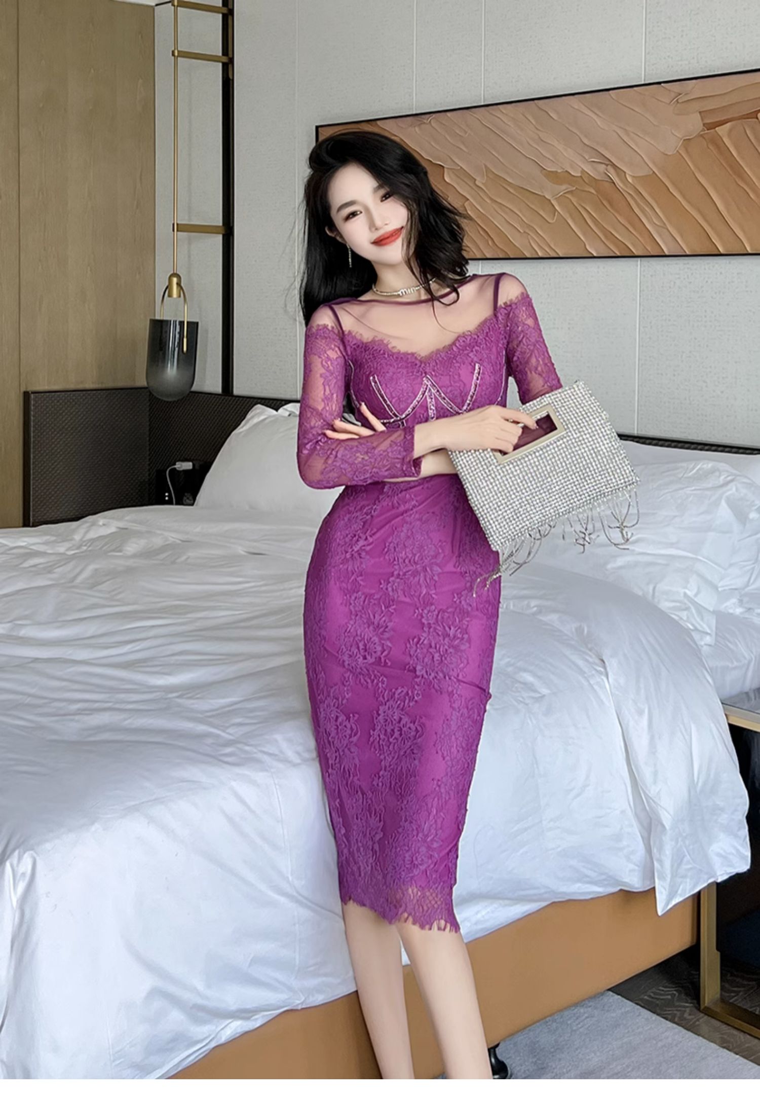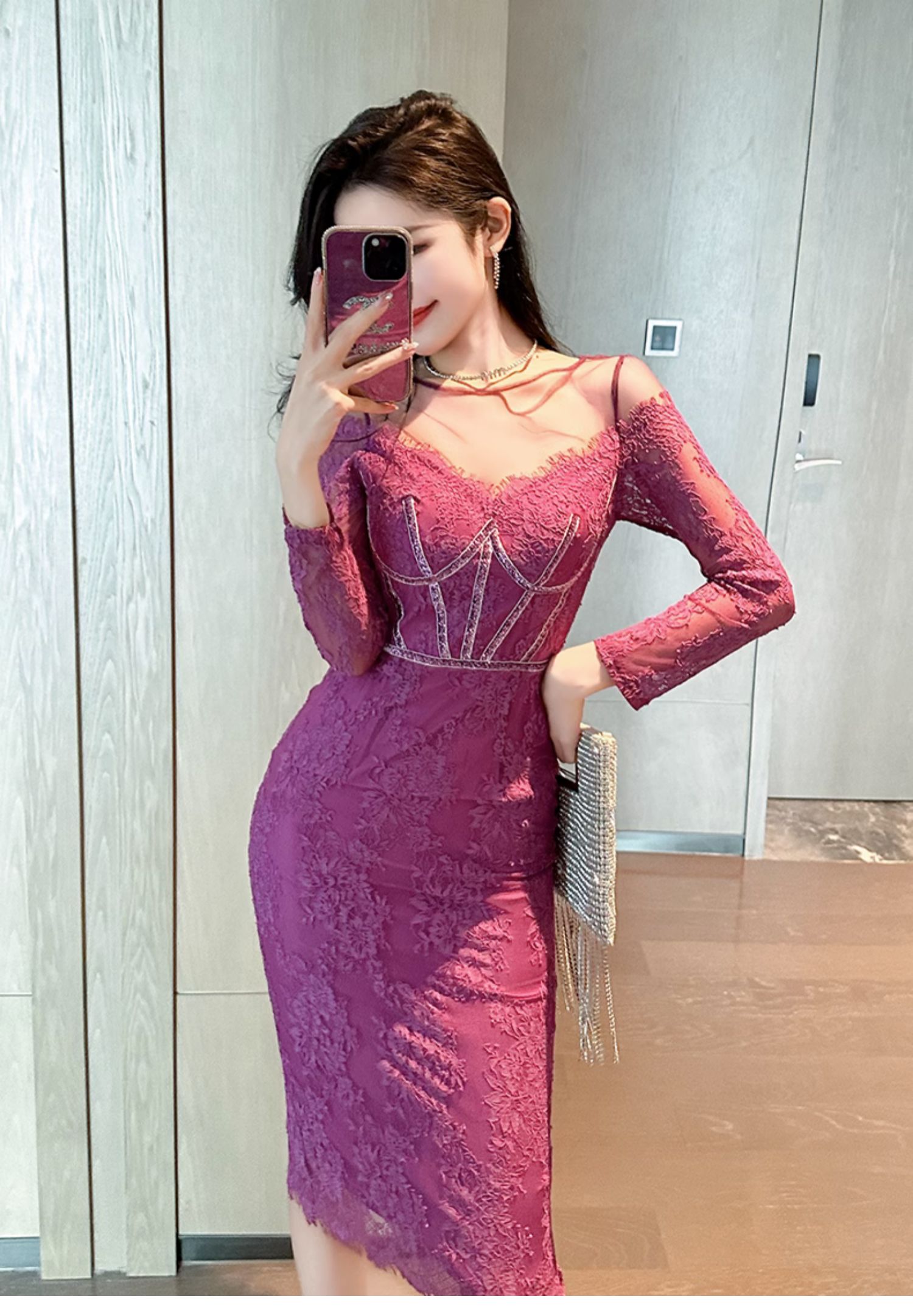 超仙女神范氣質秋季連衣裙新款性感顯身材高級感修身包臀蕾絲裙子